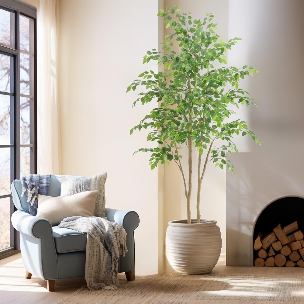Love how lifelike this faux ficus looks—glossy leaves, natural trunk, and perfect height! It instantly brightens my living room with a fresh, realistic vibe. Zero maintenance but all the style—my space feels more inviting and upscale now. Highly recommend for an effortless green upgrade!