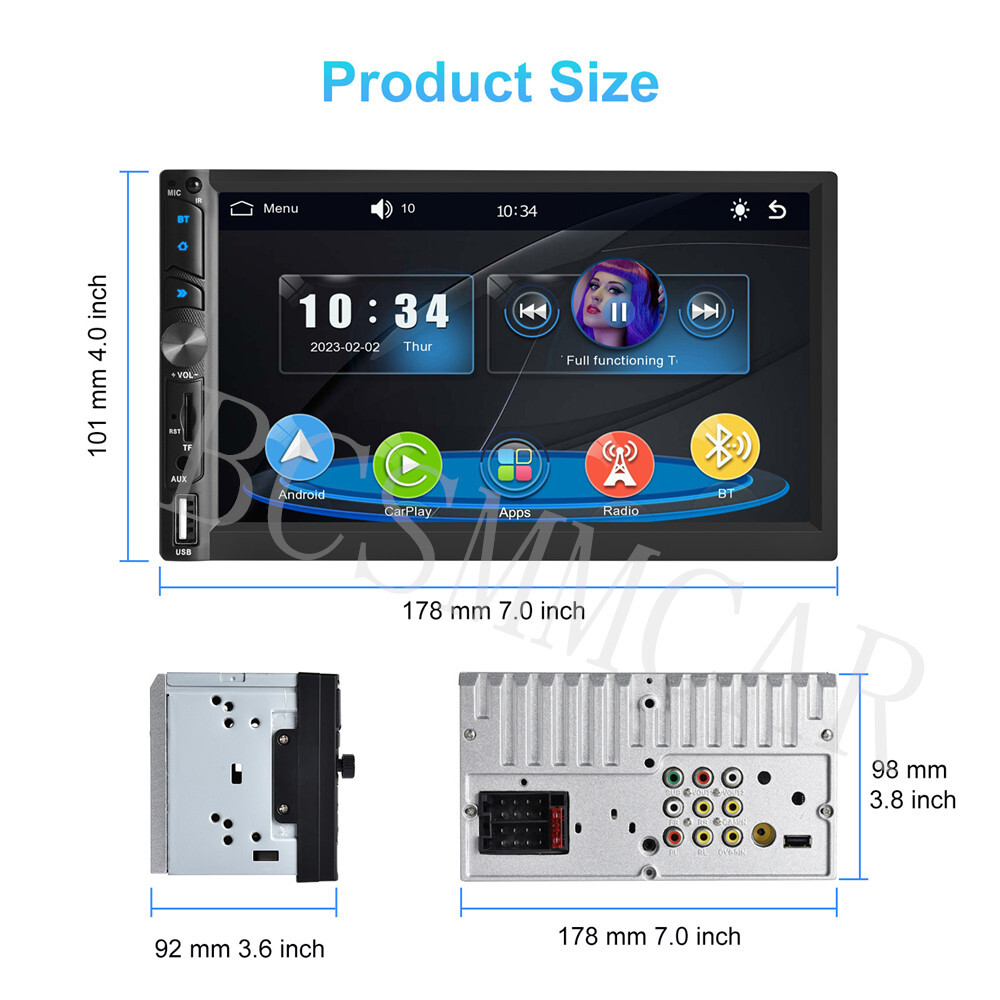 Product View Detail 7 Inch 2 din Car Radio MP5 Bluetooth Mirror Link Multimedia Player for Wireless Carplay with microphone +4LED Rear Camera Kit Note:Not is universal , Please check with your car panel's size !!! Features: ● Wireless Carplay: You can choose wired connection or wireless connection to carplay, connect to Apple mobile phone, access mobile phone address book, mail, notification, map navigation, music, video and other information, and realize voice control. ● Wireless Android auto: The Wireless Android auto car system can closely integrate the user's Android phone and player, and realize navigation, make calls, send and receive information, listen to music and other operations through data cable connection. ●Screen: 7-inch high-definition video playback. ●Mirror Link: Support Android/ Iphone Mirror Link,through phone's original USB line Can synchronized to the on-board screen,which can support Apple mobile phone 13.4 version, Android mobile phone version 10.1. More than this version or does not support mobile phones, need to upgrade the software after the original factory debugging. ●Built-in Bluetooth function, can connect to phone, and handsfree calling, more safer when driving car, bluetooth music play. ●Various UI theme wallpapers to choose from, switch styles at any time, bringing a different visual experience. ●FM radio: You can listen to real-time traffic, news boradcasts, weather forecasts, etc receiver 18 preset Store Function. ●Support Steering wheel control function : Quickly switch functions which you want with your car's steering wheel,more convenient. ● Rear view camera input function(included 4LED Camera): Need to choose the camera, if connect to a car backup camera, the car stereo monitor will turn to rear view reversing details automatically(require optional). ● Colorful backlight settings:Support seven color backlight,you can select your favorite color in the setup menu decorate your car. ●AUX audio input interface supports external MP3, mobile phones, music players, etc. ●Multi-function USB: support USB input to play music, as well as high current USB output to be charged mobile phone Specification: System: F133 Size: 7.0 inches Voltage: 12V Audio amplifier: 7388 Bluetooth: 5.1 Screen resolution: 1024*600 Output power: 4*45W USB interface: USB2.0 Reversing input: CVBS&AHD720 Radio range: FM 87.5-108.0MHZ (Europe) External microphone: support DVR: Support (designated USB recorder) Working temperature: -20℃ ~ 70℃ Factory Settings Key: 113266 Audio format: MP3/WMA/WAV/APE/FLAC Video format: MKV/AVI/TS/TP/MP4/M4V Max Bit Rate (50Mbps-80Mbps) Languages: English, French, Spanish, Russian, Italian, Portuguese, German, Polish, Chinese (simplified), Turkish, Arabic, Hebrew Package Included: 1 x car player 1 x Power Cable 1 x Horn Cable 1 x Remote Control 1 x external microphone 1 x User Manual 1 x 4LED Rear camera Shipping Policy Payment Method Returns Policy Shipping Policy Payment Method Returns Policy Copyright © 2017 DataCaciques Home Payment Shipping About us Contact us BCSMMCAR Store Categories Store Categories Other Product View Detail 7 Inch 2 din Car Radio MP5 Bluetooth Mirror Link Multimedia Player for Wireless Carplay with microphone +4LED Rear Camera Kit Note:Not is universal , Please check with your car panel's size !!! Features: ● Wireless Carplay: You can choose wired connection or wireless connection to carplay, connect to Apple mobile phone, access mobile phone address book, mail, notification, map navigation, music, video and other information, and realize voice control. ● Wireless Android auto: The Wireless Android auto car system can closely integrate the user's Android phone and player, and realize navigation, make calls, send and receive information, listen to music and other operations through data cable connection. ●Screen: 7-inch high-definition video playback. ●Mirror Link: Support Android/ Iphone Mirror Link,through phone's original USB line Can synchronized to the on-board screen,which can support Apple mobile phone 13.4 version, Android mobile phone version 10.1. More than this version or does not support mobile phones, need to upgrade the software after the original factory debugging. ●Built-in Bluetooth function, can connect to phone, and handsfree calling, more safer when driving car, bluetooth music play. ●Various UI theme wallpapers to choose from, switch styles at any time, bringing a different visual experience. ●FM radio: You can listen to real-time traffic, news boradcasts, weather forecasts, etc receiver 18 preset Store Function. ●Support Steering wheel control function : Quickly switch functions which you want with your car's steering wheel,more convenient. ● Rear view camera input function(included 4LED Camera): Need to choose the camera, if connect to a car backup camera, the car stereo monitor will turn to rear view reversing details automatically(require optional). ● Colorful backlight settings:Support seven color backlight,you can select your favorite color in the setup menu decorate your car. ●AUX audio input interface supports external MP3, mobile phones, music players, etc. ●Multi-function USB: support USB input to play music, as well as high current USB output to be charged mobile phone Specification: System: F133 Size: 7.0 inches Voltage: 12V Audio amplifier: 7388 Bluetooth: 5.1 Screen resolution: 1024*600 Output power: 4*45W USB interface: USB2.0 Reversing input: CVBS&AHD720 Radio range: FM 87.5-108.0MHZ (Europe) External microphone: support DVR: Support (designated USB recorder) Working temperature: -20℃ ~ 70℃ Factory Settings Key: 113266 Audio format: MP3/WMA/WAV/APE/FLAC Video format: MKV/AVI/TS/TP/MP4/M4V Max Bit Rate (50Mbps-80Mbps) Languages: English, French, Spanish, Russian, Italian, Portuguese, German, Polish, Chinese (simplified), Turkish, Arabic, Hebrew Package Included: 1 x car player 1 x Power Cable 1 x Horn Cable 1 x Remote Control 1 x external 