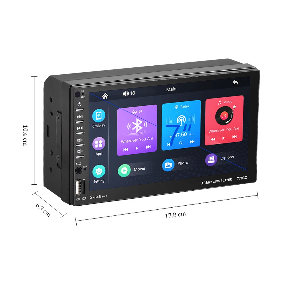 7" Double 2 DIN Apple Carplay Car Stereo Radio Bluetooth Touch Screen MP5 Player Description Features 1. Screen: 7-inch high-definition video playback 2. Support rear view system: If connect to a car backup camera, the car stereo monitor will turn to rear view reversing details automatically and help driver a safe parking 3.Driving recorder: You can choose the driving recorder, there is playback on the car, you can keep the evidence 4. FM radio: online music, you can transmit music to car stereo through FM, enjoy the original car stereo sound, and with 18 preset radio stations 5. Mirror Link: Support Android/ Iphone Mirror Link,through phone's original USB line Can synchronized to the on-board screen,which can support Apple mobile phone 13.4 version, Android mobile phone version 10.1. More than this version or does not support mobile phones, need to upgrade the software after the original factory debugging 7. Bluetooth function: dual-pass Bluetooth 4.2 version / support for incoming and outgoing calls / synchronous address book / support for mobile phone music playback / support for voice functions. 8. Media: Support various brands of U disk with unlimited capacity/USB card reader/audio and video input (AUX IN)/audio output (subwoofer)/video output (display on the same screen); 9. Play function: support MP3/WMA/APE/FLAC/WAV/OGG and other audio formats; support RM/RMVB/ VOB/DAT/MP1/MP2/DIVX/MP4/ FLV/3GP/SWF/AVI/ASF/MIPEG, etc. Video format 10. Capacitive screen full-screen touch, sensitive operation. 1024*600 display The new A-standard high-definition IPS screen. 11. Support English/Chinese/Portuguese/Western/Russian/German/Italian/Polish/French/Japanese/Turkish/Czech and other languages, the default is English 12. Carplay: You can use wired connection to carplay, connect to Apple mobile phone, access mobile phone address book, mail, notification, map navigation, music, video and other information, and realize voice control. 13.Wired Android auto: The wired Android auto car system can closely integrate the user's Android phone and player, and realize navigation, make calls, send and receive information, listen to music and other operations through data cable connection,Applicable to Android phones (not applicable to Huawei brand phones) Specifics Chipset: C800 Screen size: 7.0 inches Screen resolution: 1024*600 Mirror link: Wired Android / IOS Radio chip: 8035 Output power: 4 * 45W Working temperature: -40℃-80℃ Steering wheel control function: support Bluetooth version: 4.2 Power amplifier chip: AC7388 Radio frequency band: FM Video output: support Reversing input:CVBS USB: double USB ports AUX: Support carplay:support wired Android auto:support wired Recorder: support (specify the recorder) External microphone: support Audio format: APE / FLAC / WAV / MP3 / WMA, etc. Video format: MKV / RMVB / AVI / MP4 / MDV, etc. Picture format: PNG / JPEG / JPG / GIF / WBMP / BNP, etc. Language: Support English/Chinese/Portuguese/Western/Russian/German/Italian/Polish French/Japanese/Turkish/Czech and other languages, the default is English Product included 1 x Car MP5 Player 1 x Power Cable 1 x Horn Cable 1 x Remote Control 1 x User Mannual 1 x MIC Payment Shipping Returns Contact Us 1. Only accept Paypal 2. All major credit cards are accepted through our secure payment processor PayPal. 3. We ship to your Paypal address. Please make sure your Paypal address is correct before you pay. Please make sure your eBay shipping address is correct for your receiving. We will try our best to solve any dispute and try our best to satisfy you. If you are not satisfied with our product, please contact first . We will gladly accept any return and give a full refund (minus shipping costs) on any item. The item must be returned to us in original condition with the health and hygiene seal intact. If you have not got it within the shipping time, please no hesitate to contact us. We will check it for you with the post office and customs. Because sometimes it will be delayed for traffic or flight jams. Please do not open dispute to us. We will take responsibility to resend or refund for any lost item. Please contact us in time if any enquriy under any circumstances. We greatly appreciate your positive feedback and we'll do the same to you. We care about our valued customers, and will always try our best to help you, if you have any problems. Working time: GMT+8 / 9:00-18:30 in normal we will reply you in one working day.