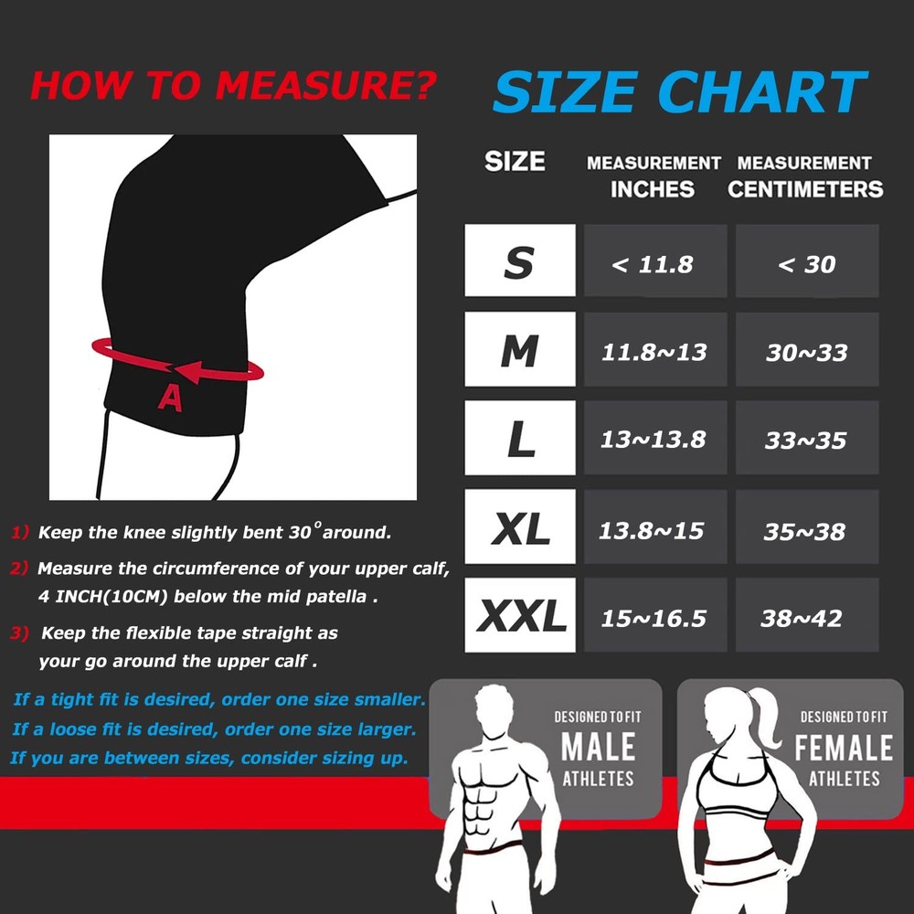7 mm HIGHEST GRADE NEOPRENE MATERIAL- keeps the sleeve snugly in place for the duration of your workout. No closures or straps to come loose, protect your knees during strenuous physical activities without impeding performance or cutting off circulation. PREVENT INJURIES & REDUCES PAIN- thermal effect material allows for optimum compression and a soothing thermal effect reducing pain caused by arthritis and inflammation. Perfect knee brace for use during healing rehab or injury prevention it helps to soothe and protect against stiff joints and muscles. KEEP KNEES WARM- provides lateral stability to prevent tendonitis and enhance the mechanics of a given movement, suitable for kids children men and women. The highly elasticated sleeve fits easily around the knee and provides excellent support and stability for Cross training home squats WODS weightlifting, powerlifting, bodybuilding and much more. UNIQUE PATTERN- special designed pattern make you become shining star in the box or GYM, best choice for gifts. SIZING CHART- please use sizing chart in listing images to order the correct size. You need to measure your true knee size with a flexible tape, sold by pair.