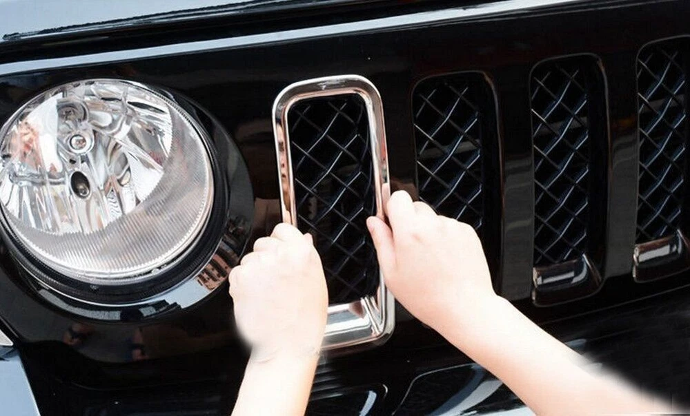 Fitment For Jeep Patriot 2011-2017 Features - Material: Made of High-Quality ABS - Paint Baking and UV Treated on surface - Easy installation with double-sided tape - Color: Chrome - Please confirm your car model is as same as the picture before submitting your order - NOTE- In case it fall off for some car models, just add some tape and put the cover back on,then they will work perfectly Package include: 7pcs Front Grille Insert Grill Trim Cover Ring Bezels Installation Guide: Step1: Please clean the installation place and keep it dry and no dust on. Step2: Tear off the self-adhesive on the back. Step3: If the weather is below 15 degrees,you may need to heat the Self-adhesive with a hair dryer for better adhesion. Step4: Do not wash the car within 48 hours after installation. 7pcs Chrome Front Grille Insert Grill Trim Frame Cover Ring For Jeep Patriot Product description About CheroCar Company: --Our CheroCar Company Ideas ☀Always adhere to the customer first, quality first, service first. --Production Control ☀All products are produced after repeated proofing, test and small batch production, in order to let the products received by all customers are the most perfect and most suitable. ☀CheroCar all products have the QC in each process for inspection, the quality can be guaranteed accordingly. Fitment Fit For Jeep Patriot 2011-2016 Features - Material: Made of High Quality ABS - Paint Baking and UV Treated on surface - Easy installation with double-sided tape - Color: Black - it was not the replacement part. - Please confirm your car model is as same as the picture before submitting your order - NOTE- In case it fall off for some car models, just add some tape and put the cover back on,then they will work perfectly Package include: 7pcs Front Grille Insert Grill Trim Cover Ring Bezels Installation Guide: Step1: Please clean the installation place and keep it dry and no dust on. Step2: Tear off the self-adhesive on the back. Step3: If the weather is below 15 degrees,you may need to heat the Self-adhesive with a hair dryer for better adhesion. Step4: Do not wash the car within 48 hours after installation. Attention: If you do not want,you can remove it easily.No glue left or you can erase it.