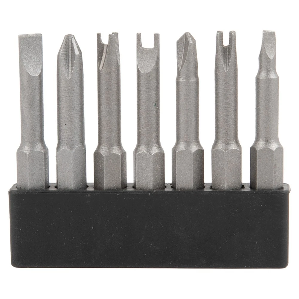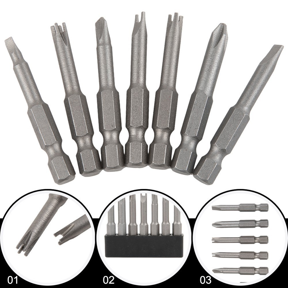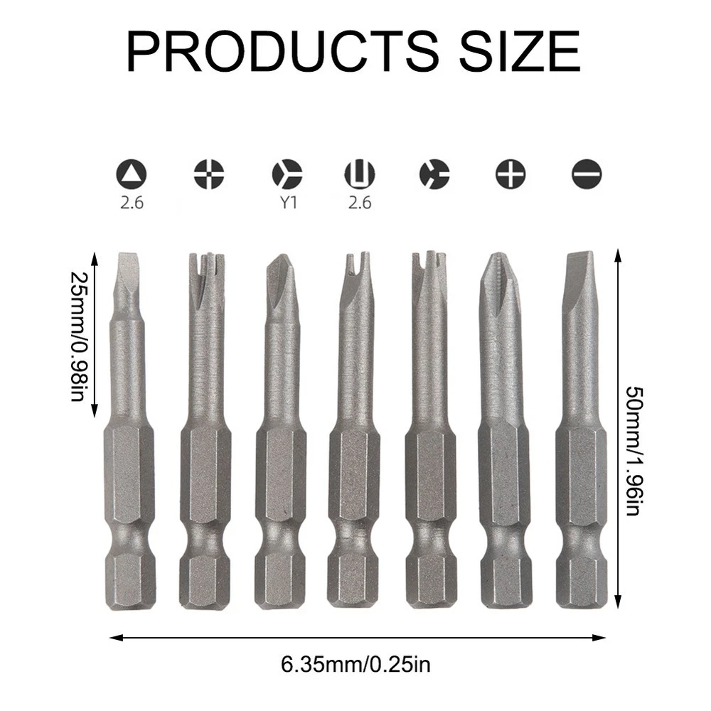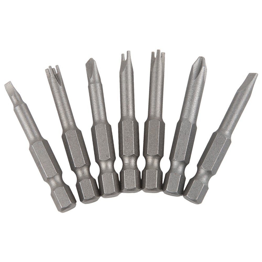 Beschreibung Feature: *Made of chrome-vanadium alloy steel, strong enough and magnetic. */4 hex shank suitable for most electric screwdrivers, hand drills. *The length is 50mm. The screwdriver head have triangle, Y, U, three points, four points and slotted, Cross screwdriver bit to meet various requirements. *Suitable for appliance repair, installation and disassembly, toy repair and so on. Specifications: Product name: Special-shaped Screwdriver Set Material: chrome-vanadium alloy steel Color: Grey(As shown) Length: (Approx. ) 50mm / .96Inch Screwdriver head shape: Triangle(2.6), Y1, U2.6, Three points, Four points, PH2, SL Suitable for: appliance repair, installation and disassembly, toy repair and so on. Quantity: 7pcs/set Package Included: 7 × Screwdriver Bits Note: .Transition: 1cm=10mm=0.39inch. 2. The real color of the item may be slightly different from the pictures shown on website caused by many factors such as brightness of your monitor and light brightness. 3. Please allow slight manual measurement deviation for the data. POLICES Shipping Payment WARRANTY We only ship to confirmed ebay Order addresses. Please comfirm that your Order address is in line with your shipping address. Please kindly note that the c ombined shipping is not provided because the shipping fee is calculated by weight. Also, the each additional item means exactly the the same color and size. It takes about 7 -15 working days to US; about 10-30 working days to other countries. Transit time may be a little delayed because of the bad weather and customs inspection . If you do not receive your item within 30 working days since payment finished, please contact us immediately for further assistance. Payment must be completed within 5 days. If you have any problems about payment, please contact us via ebay message. We strive for 100% customer satisfaction! Positive Feedback is very important to us. If you have any questions, p lease feel free to contact us via "Ask seller a question" . We will reply your email within 24 working hours.