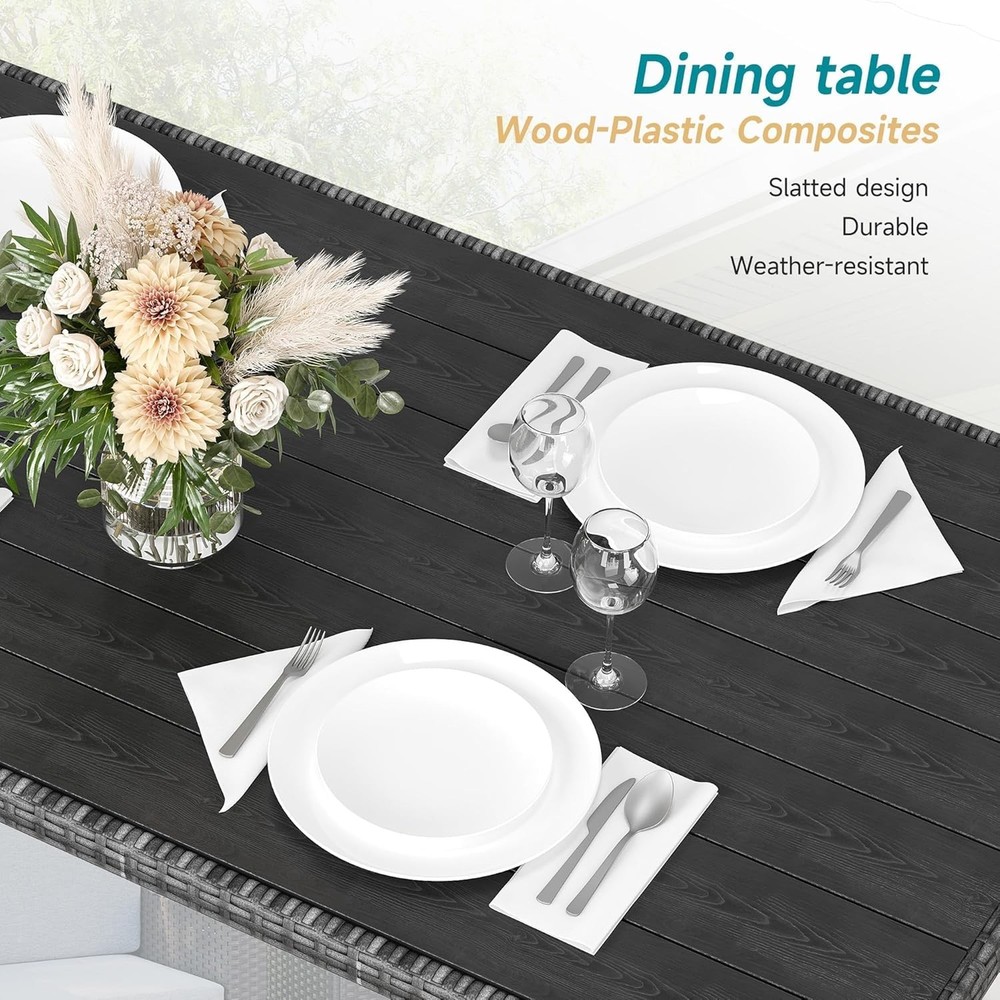 7pcs Patio Furniture Set Outdoor Wicker Conversation w/ Table Rattan Patio Chair