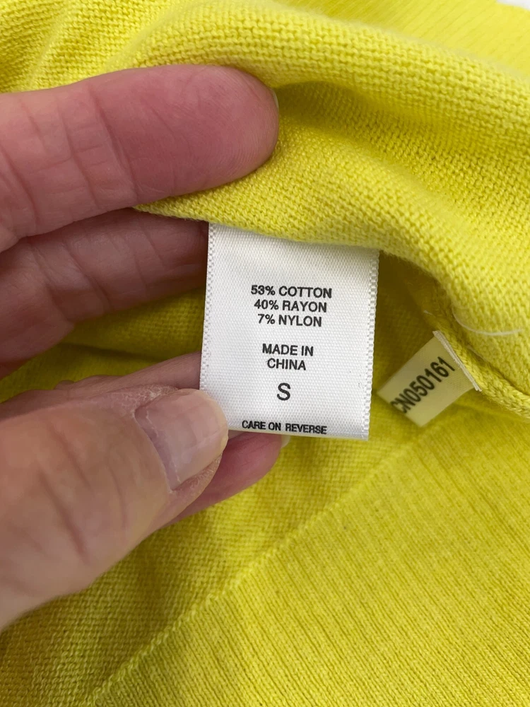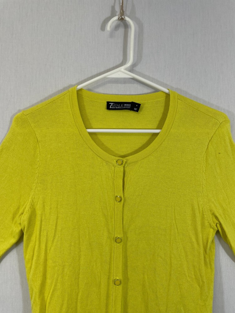 7th Avenue New York & Company Womens Green Button Front Cardigan Sweater Size S Brand: 7th Avenue New York & Company Department: Women Color: Green Size: Small Type: Sweater Style: Cardigan Pattern: Solid Sleeve Length: Short Sleeve Neckline: Round Neck Material: 53% Cotton, 40% Rayon, 7% Nylon Closure: Button Occasion: Casual Fit: Regular Vintage: No Country/Region of Manufacture: China Condition: Pre-Owned, In Good Condition SKU: 1-1761-0024 Measurements Armpit To Armpit: 16.5" Length: 25" “Please examine and study all pictures carefully for damage, wear, condition, and missing parts and pieces. We try to state any defects but the items will arrive as they are pictured. Thank you for your purchase! Please check out our other listings. My Purpose Thrift's mission is to work and partner with various local ministries, organizations, and nonprofits to help facilitate and monetize physical donations. We carefully select items that are in good to great condition to sell online and offer you the best products and best service. Be assured that your purchase will help local ministries/charities! We are a registered 501(c)3 organization. All Offers will be considered.”