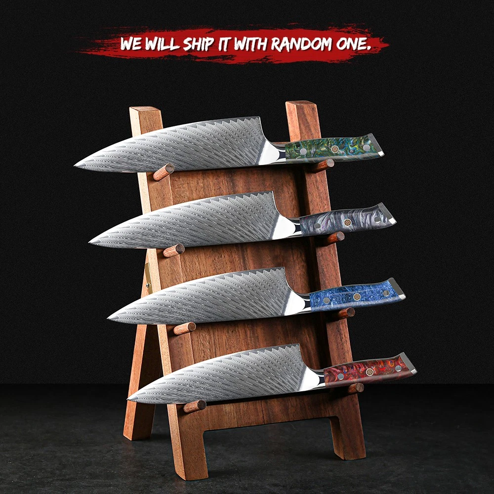 Feature: This kitchen knife set are made of high quality Japanese 67-layer Damascus steel and treated with 60HRC vacuum heat treatment and liquid nitrogen cooling. The Rockwell hardness of the cutting core is 60+. The cutting edge is 15 degrees, which means the blade is super sharp. Compared with similar products at this price, it has outstanding performance advantages.Exquisite appearance: beautiful and impressive pattern. Every time you pick it up, you can't help but taking cooking seriously. AND remember? Serious men are always handsome. Then don’t forget to wipe your chef knife after using, to make a perfect finish to your cooking.The chef Knife is one of the most useful and versatile designs available, which you can use to chop, slic... DAMASCUS KNIVES 7x TURWHO Kitchen Knife Block Set Damascus Steel Chef Santoku Bread Slicer Knife Feature: This kitchen knife set are made of high quality Japanese 67-layer Damascus steel and treated with 60HRC vacuum heat treatment and liquid nitrogen cooling. The Rockwell hardness of the cutting core is 60+. The cutting edge is 15 degrees, which means the blade is super sharp. Compared with similar products at this price, it has outstanding performance advantages. Exquisite appearance: beautiful and impressive pattern. Every time you pick it up, you can't help but taking cooking seriously. AND remember? Serious men are always handsome. Then don’t forget to wipe your chef knife after using, to make a perfect finish to your cooking. The chef Knife is one of the most useful and versatile designs available, which you can use to chop, slice, dice and mince all types of vegetables, fruits, meats, bread and fish. This chef knife will be your most valuable player, no matter what type you pick. So choosing an excellent chef knife is especially important. Design Characteristics: The optimal size and weight own a best balance.The shade of handle is designed based on the human engineering. This can lessen your tiredness, numbness, and soreness even if you grasp it for a long time. EASY CARE:All knives store safely In the acacia wood knife block. Simple appearance can decorate your kitchen without taking up space and reduce knife contact with air and risk of rusting.It is indispensable gift for Christmas parties. Specification: Brand: TURWHO Blade Material: Japanese VG10 67-layer Damascus Steel Handle Material: Resin Handle, G10 Handle Handle Color: The Resin Handle colors will be sent by Random, the Paring Knife with Red G10 Handle are Fixed Red Color. Cutting edge: 15 degrees Food Compatibility: Universal Manufacturer Warranty: Lifetime Weight: 4.95KG (including box) Notice: The Resin Handle colors will be sent by Random, and the Paring Knife with Red G10 Handle are Fixed Red Color. Package included: 1x TURWHO 3.5-inch Paring Knife (With Red G10 Handle) 1x TURWHO 7-inch Santoku Knife with Resin handle (Handle colors will be sent by Random) 1x TURWHO 8-inch Slicing knife with Resin handle (Handle colors will be sent by Random) 1x TURWHO 8-inch Chef knife with Resin handle (Handle colors will be sent by Random) 1x TURWHO 8-inch Bread Knife with Resin handle (Handle colors will be sent by Random) 1x TURWHO Multi-Purpose Kitchen Scissors 1x TURWHO Acacia Wood Storage Block Holder 1x TURWHO Premium Package Gift Box 1x TURWHO Cleaning Cloth 1x TURWHO Operation Instructions Item Specifics Brand TURWHO Set Includes Knife Set Type Knife Set Food Compatibility Universal Material Japanese VG10 Damascus Steel Cutting edge 15 degrees Color Random MPN USHHG528 Blade Edge Straight Handle Material Resin Handle, Red G10 Handle Features Well Balance, Knife Block & Shears Included Number of Items in Set 7 Custom Bundle Yes Manufacturer Warranty Lifetime Bundle Description 5x Knife, 1x Kitchen Shears, 1x Knife Block In Gift Box Making Method Hot Air Room Kitchen Blade Length 3.5in, 7in, 8in, 8in, 8in Block Holder Material Acacia Wood Payment All purchases will go through eBay secured checkout to ensure that your order is processed without any delays. After you have made your purchase you can either click on 'Pay now' or follow the instructions in an automated email that you will receive shortly after your purchase. During the checkout, you can make an immediate payment by PayPal account, MasterCard, Visa or select an alternative method of payment, and receive the necessary payment details. Please note: If you have already marked payment as sent But actually not paid, then you MUST mark as payment not sent otherwise the PAY NOW button will not be available. Shipping 1.all orders will be Dispatched within 2 working days after payment. 2.orders are not processed on weekends or public holidays. 3.usually takes 3-6 business days to most US destinations. 4.Your patience would be much appreciated. 5.all items will be checked carefully and packaging well before send out. 6.All orders are including the tracking number. Any questions, please feel free to contact us. Returns Refund or replacement request is available only the requests within 60 days after parcel received & return the item as the same condition as received. Please contact us to request a return authorization. Your name, auction number, and reason for return should be included in the email. All items returned must contain all original packaging materials. Please repack the item carefully. Item returned will be tested and a new replacement will be shipped to the buyer immediately when found defective. In the event that a suitable replacement is not available then a refund will be issued. If the item is found non-defective and buyer just don't like it, we will still make you a full refund, but the return shipping fee at buyer's expense. All item return must have a RMA number, Please contact us to request a return detail address and the RMA number, this can help us identify return items accurate. Buyer is responsible for additional shipping costs for items that are returned refused or undeliverable. We do not accept any retu