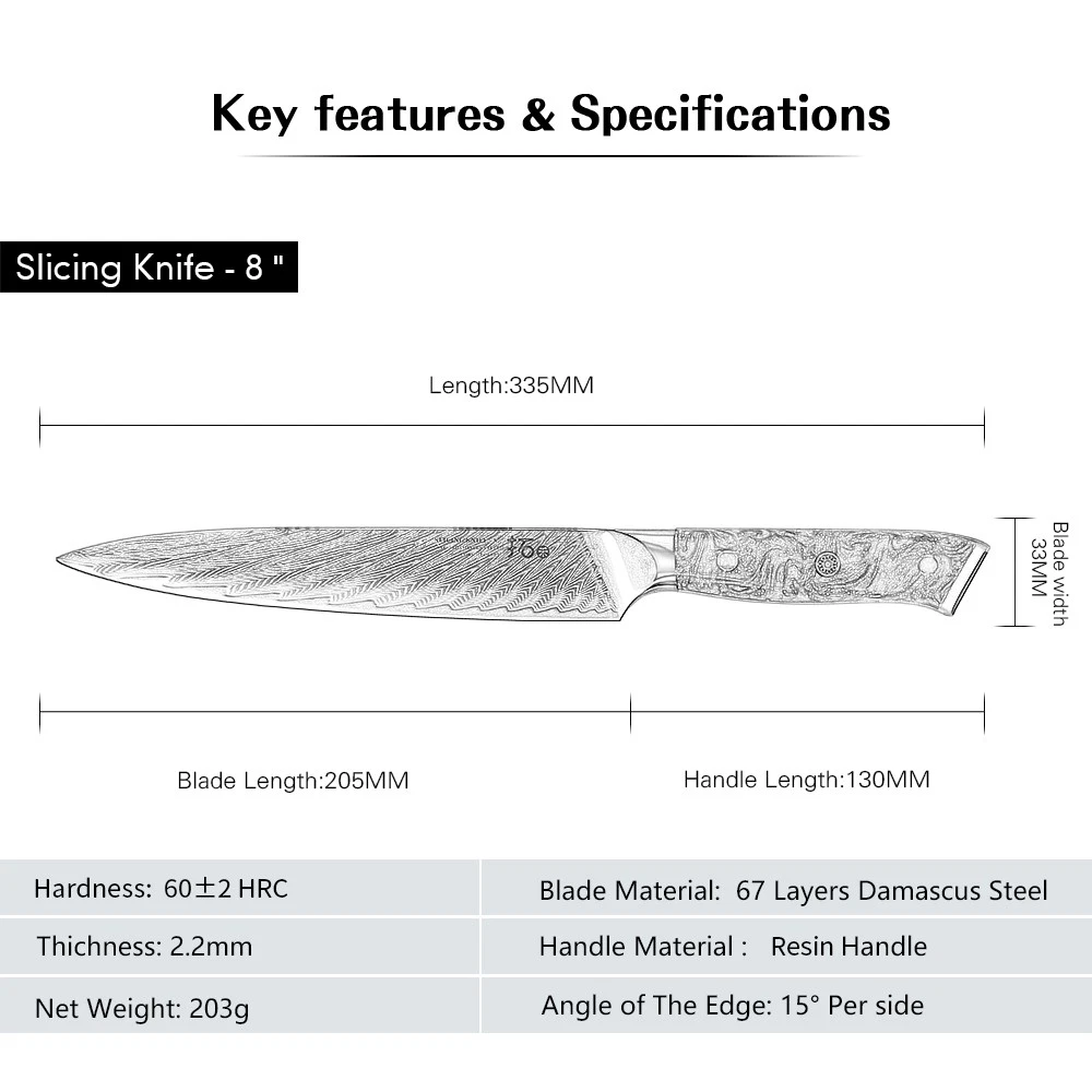 $ 176.887x TURWHO Kitchen Knife Set Japanese VG10 Damascus Steel Chef Cook Slicing Knife