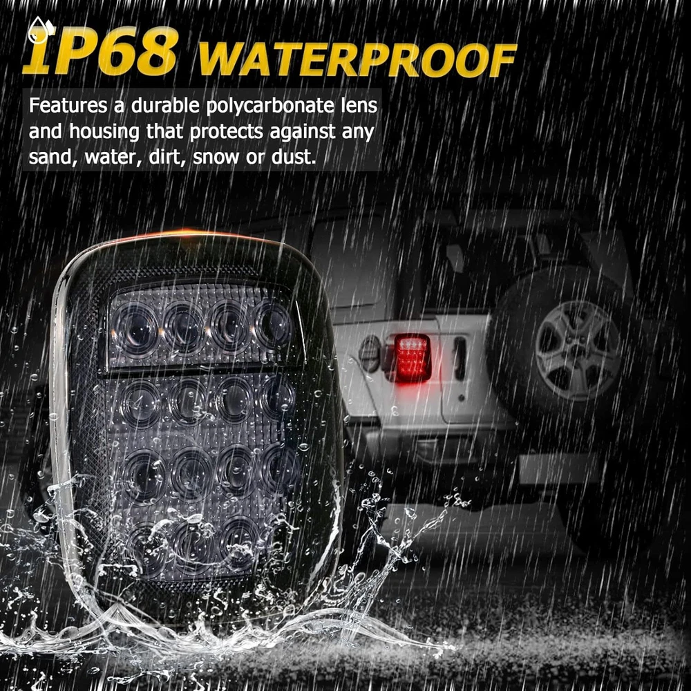 Product Description Fit any car or truck that has 7x6 / 5x7 inch headlights, replaces high/low sealed beam type: H6052 h6053 h6054 Plug play: Although this kit is plug and play, professional installation is highly recommended PLEASE NOTE Some vehicles with sensitive electronic system may have flickering problem when they get replacement. You can purchase a set of H4 anti-flicker hardness Specifications: 1. New shape super bright LED, suitable for wide voltage range of various models, long service life. 2. Waterproof IP68 anti-corrosion, can withstand bad weather such as rain or fog, can be clearly visible in any weather. 3. Widely used in cars / trucks / off-road / agricultural vehicles / engineering vehicles / snow forklifts / excavators. 4.Die-Cast aluminum alloy case, black, high heat dissipation. 5.6000K-6500K cool white can provide better lighting effect for the road surface 6. This LED headlight is suitable for most vehicles and requires little modification. If the rear space of the headlights is limited, some modifications to the bucket may be required. Some car need use H4 wring socket to change pins(not included in the package),few old japan brand cars will need to buy extra relay kit. 7. Some vehicles such as Toyota may need to move the pins on the headlamp plug to different position. Some vehicles have different plug orientation. Specification: Function: Hi/Lo Beam Plug: H4 / 9003 Size: 5x7 inch / 7x6 inch LED Power:120W/PCS / 240W/PAIR Luminous Flux: 12000LM@high beam,8000LM@low beam Operating Voltage: 9-32V DC Waterproof rate: IP 67 High intensity LEDs Color Temperature: 6000K-6500K Material: Die-Cast Aluminium heat sink alloy body Lens material: PMMA Lens Life Span: more then 80000 hours Working temperature: -40~ 85℃ Fit Model Compatitable with headlights: H6014 H6054 H5054 H6054LL 69822 6052 6053 Tail Lights Kit: Description 100% Brand New, With High Quality LED Quantity: 16 LEDs (4 White LEDs and 12 Red LEDs) Including 12 red square LEDs (Stop,Turn & Tail) & 4 white square LEDs (Back-up/Reverse) Voltage: 12V Epoxy sealed,100% waterproof, High light efficiency, low power consumption, energy saving Function: stop, turn, tail and back up lights Waterproof, Dustproof, Anti-shock & Anti-vibration. Long lasting, lifespan above 50,000 hours. Easy Install to different types vehicles. Acrylic lens is screwed on to the housing Features chrome reflector inside the lens which is much brighter and more visible from different angle Stud Mount, four wires (1 black, 1 red, 1 white and 1 brown) Professional Installation is Highly Recommended (No Instruction Included) Wire Connection Tips Black Wire(negative) + Red Wire (Positive), Red light is high brightness Black Wire(negative) + Brown Wire(Positive), Red light is low brightness Black Wire(negative) + White Wire(Positive), White light works This square stop turn tail light is universal, Also you can DIY it to suit for Jeep YJ JK ,Jeep CJ CJ-7 CJ-5 ( NOT factory Jeep light ) Package includes: 2pc 7x6 5x7 led headights 2x Stop/Turn/Tail/back up Lights