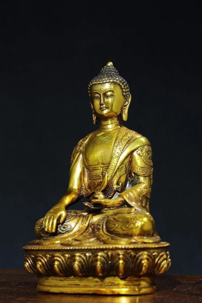 $ 124.198" Antique Tibetan Buddhism Bronze 24k Gold Gilt Tathagata Buddha Statue