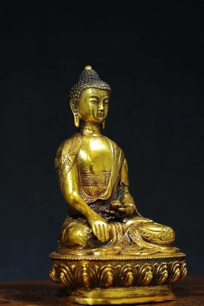 $ 133.068.7" Antique Tibetan Bronze Gilt Shakyamuni Buddha Statue from China
