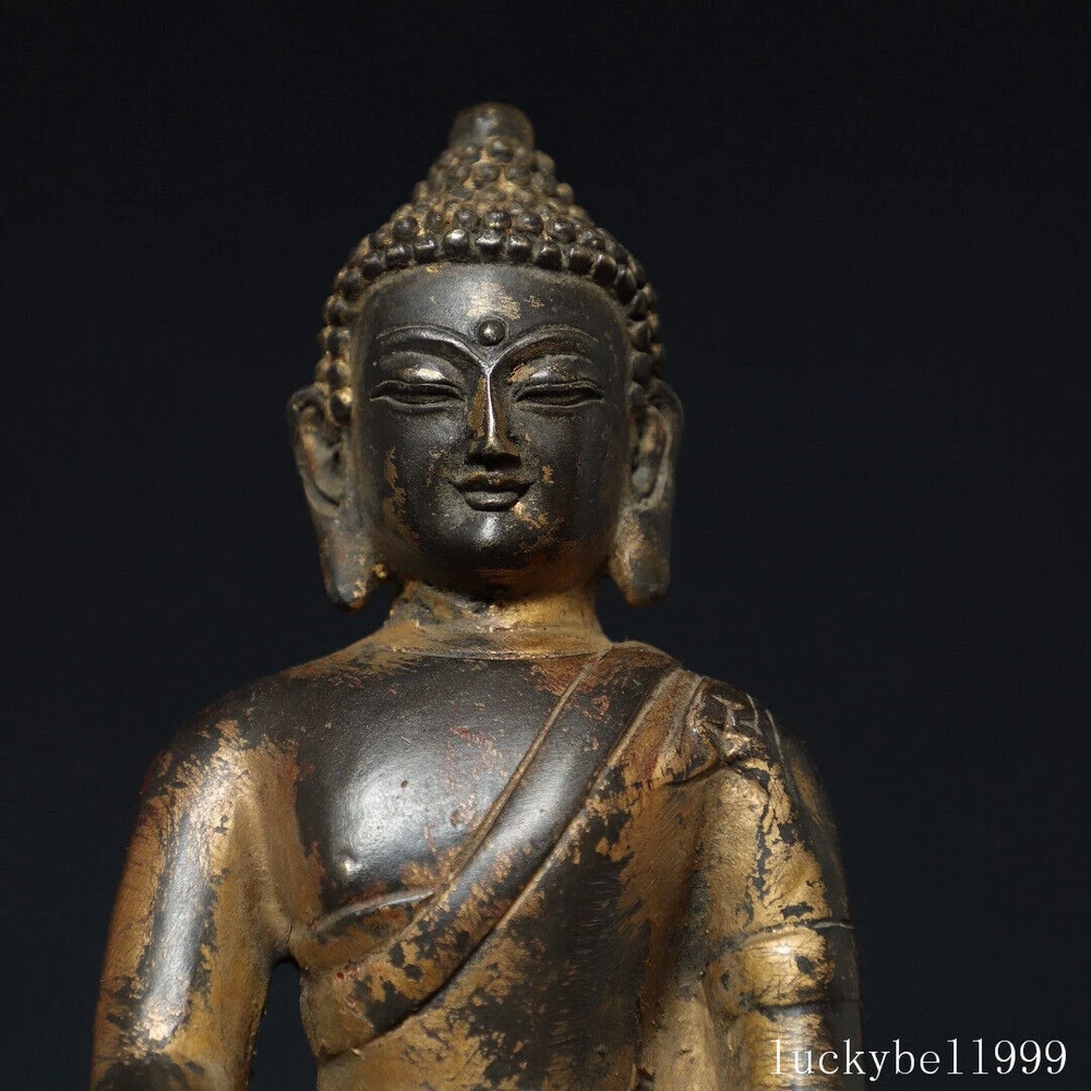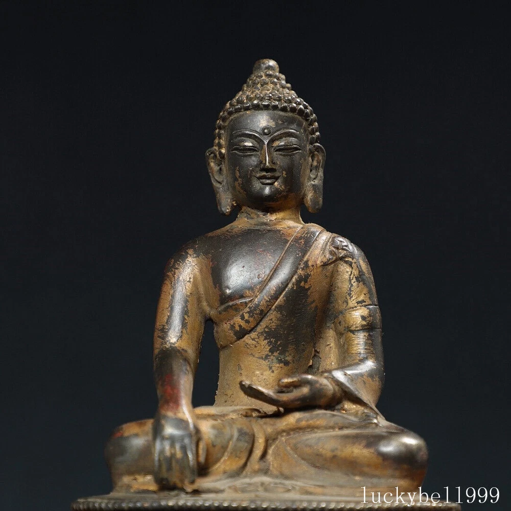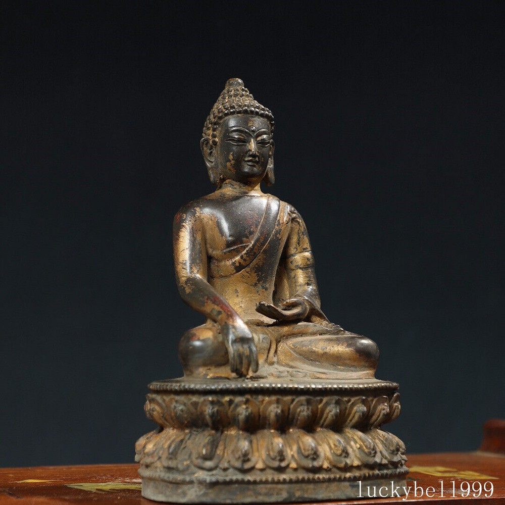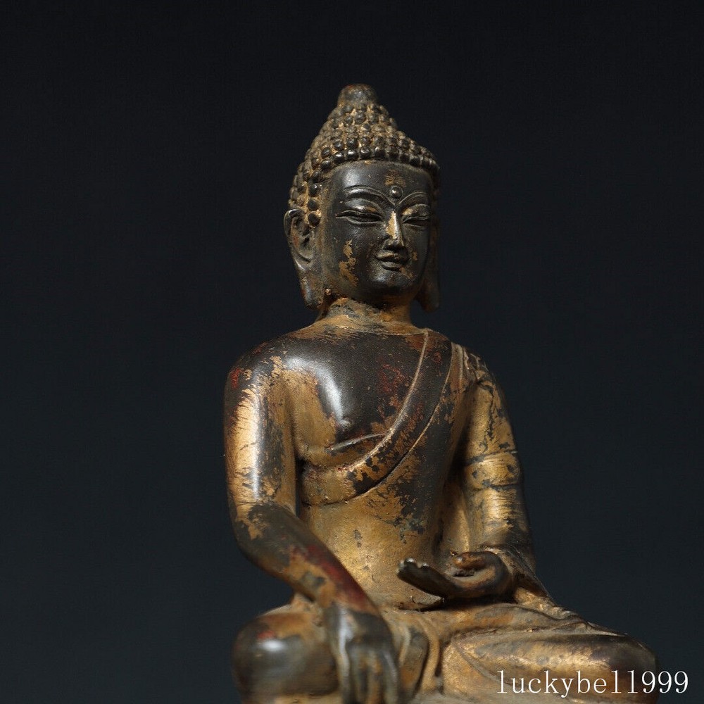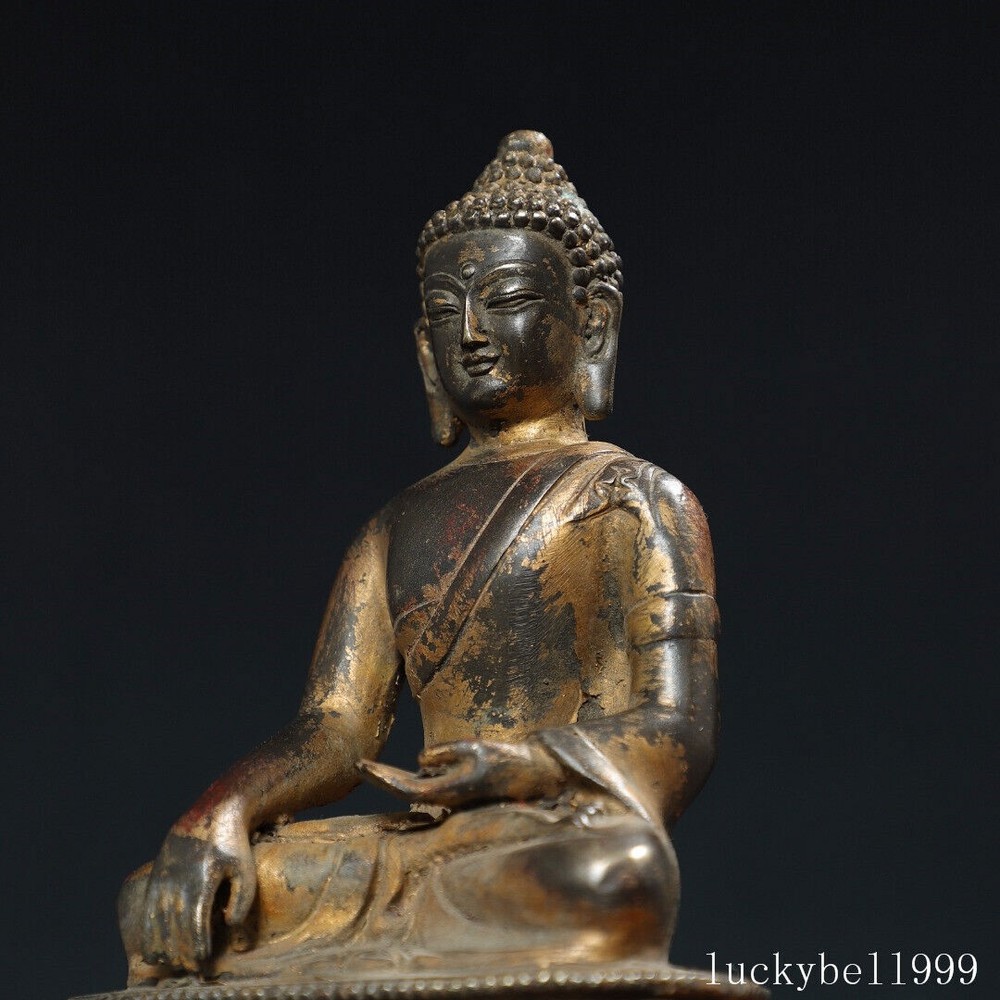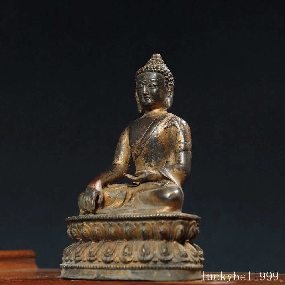 8" Antique Tibetan Buddhism Gilt Bronze Amitabha Buddha Statue