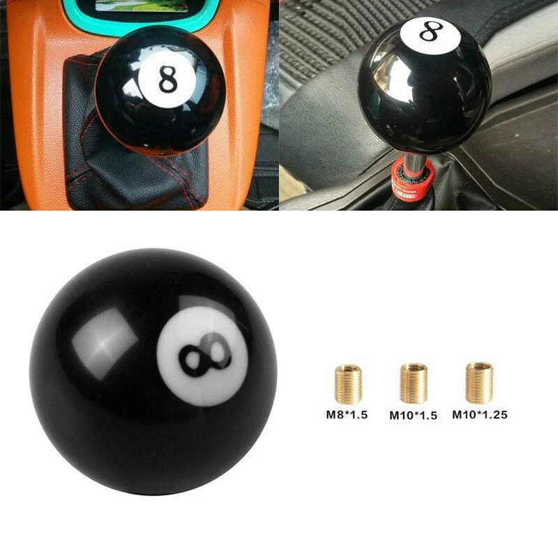 8 Eight Billiard Ball Car Gear Shift Knob Shifter Lever Universal Black + White Specification: 100% Brand new and high quality Fit for all car Manual Transmission (MT) and Automatic Transmission (AT) without lock button 3 size thread adapter included: M8*1.25, M10*1.25, M10*1.5 Best replacement for the worn or orginal Gear Shift Knob Durable, easy to install No modification is required Color: black+white Note: We provide clear pictures, measurements where possible. Please check as much as possible to make sure the item is the one that you need. Please allow 1-10mm deviation due to manual measurement. Due to light and screen difference, the item's color may be slightly different from the pictures. Installation tips: Remove the original car gear shift knob Take Plastic adapters suitable size For shift knob Put The gear head into the shift knob The gear head directly set into the shift knob rod Package included: 1x Gear Knob 3x Thread Adapters eBay Cross Border Trade powered by ChannelEffect