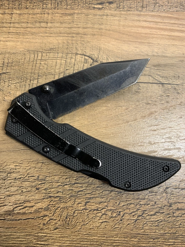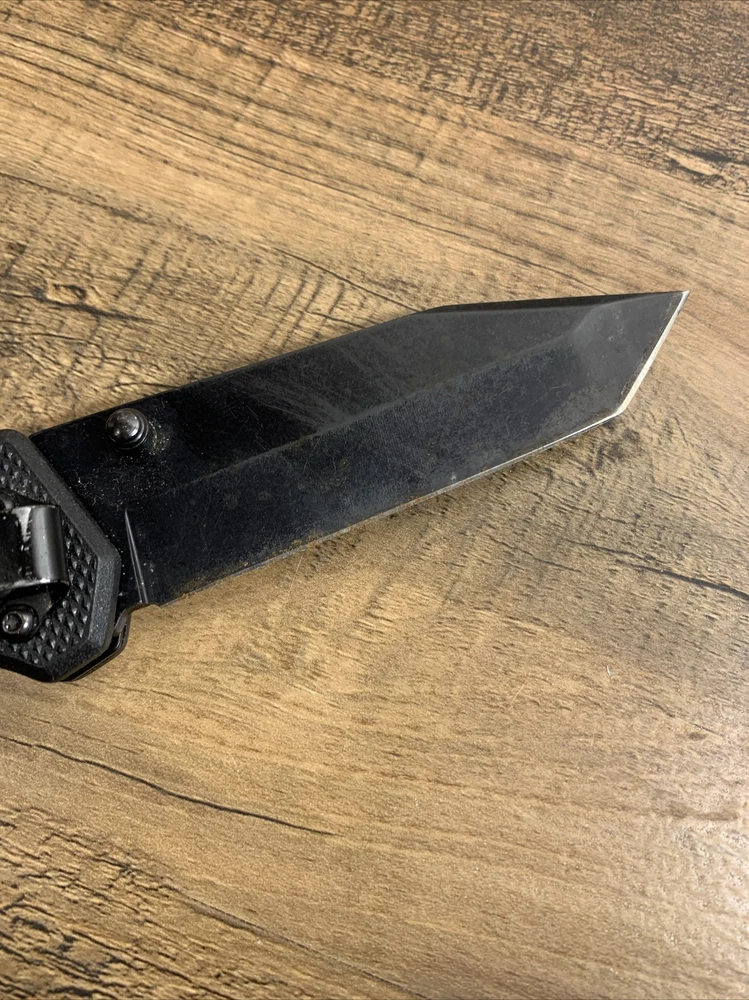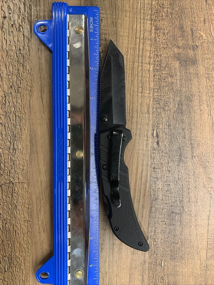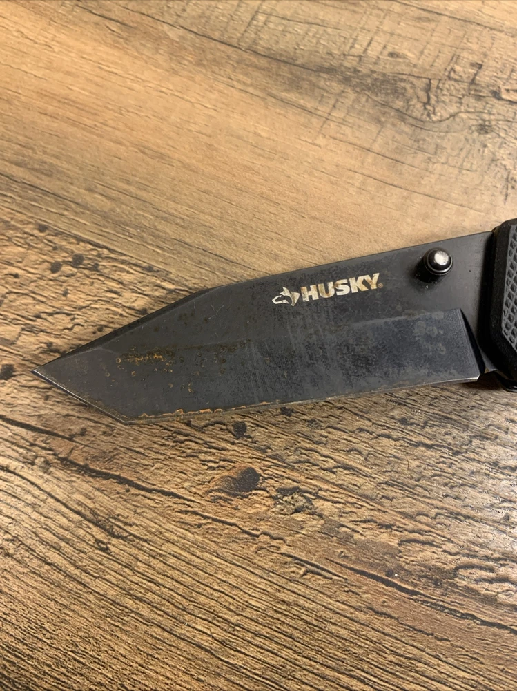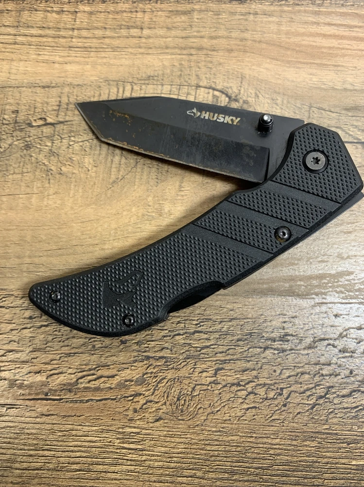 8” Black HUSKY Lock Back Folding Pocket Knife w/ Tanto Blade Condition: Used; Knife handle is in good condition. Blade has some wear and rusting - may need to be replaced. --- Items are packaged as securely as possible to ensure no damage during shipping. Items will be shipped on the Tuesdays or Fridays following payment.