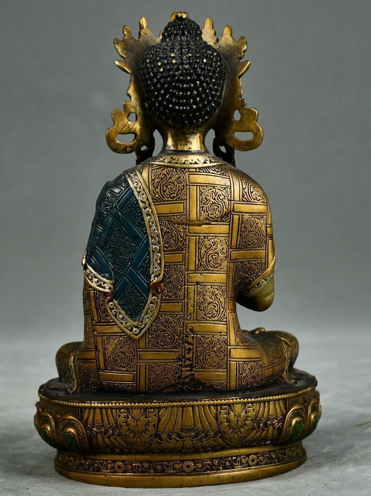 8.6 Inch Antique Tibet Bronze Mahakala Wrathful Deity Buddha Statue with Backlight