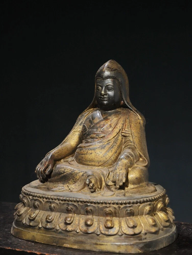 $ 124.198" Antique Tibetan Buddhism Bronze 24k Gold Gilt Tathagata Buddha Statue