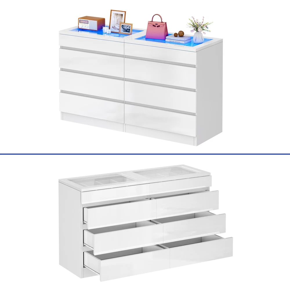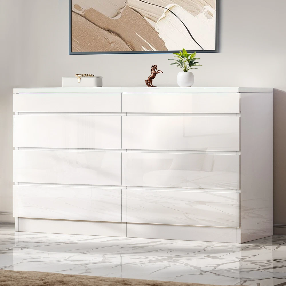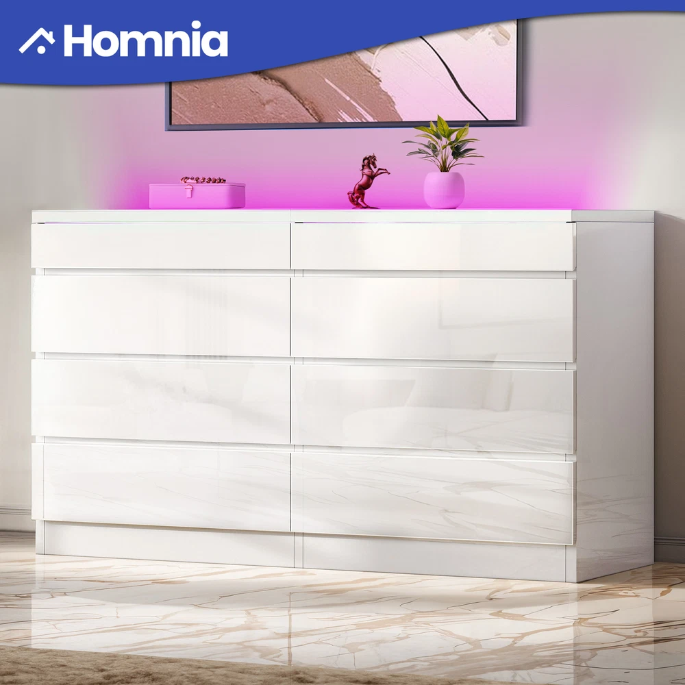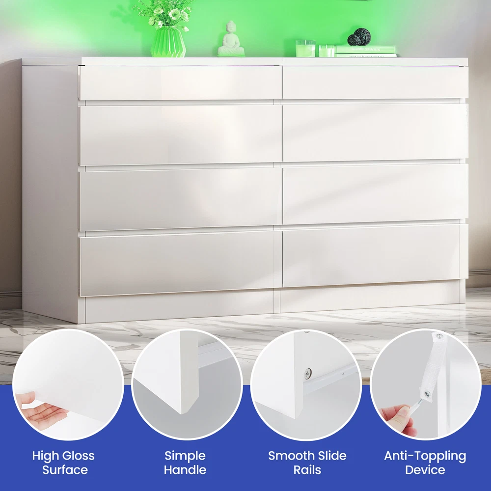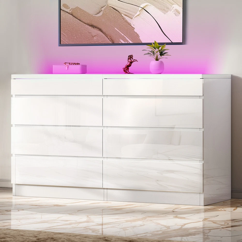 8 Drawer LED Chest of Drawers Dresser Vanity Cabinet White Storage Space Bedroom