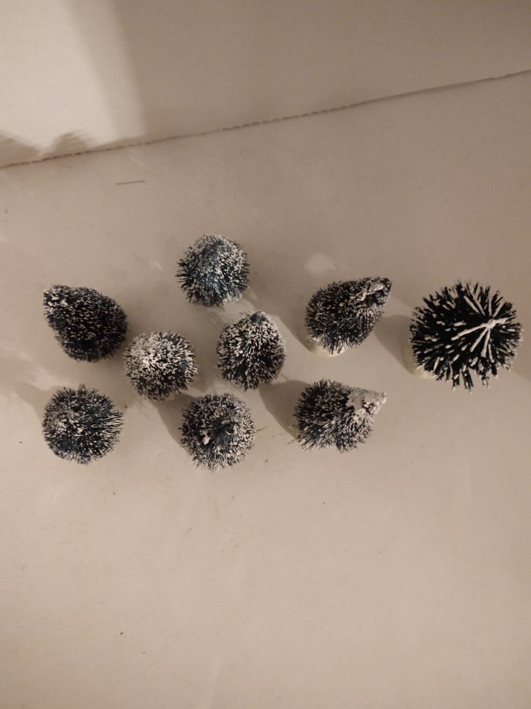 Set of 8 Lemax Flocked Christmas Bottle Brush Trees Holiday 2" - 2 3/4" Condition: Pre-Owned