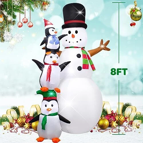 30 Days Return Policy Fast Delivery Trusted seller 8 Foot Christmas Inflatable Snowman Penguin Decoration with LED Lights,Huge Blow up Christmas White Snowman Indoor Outdoor Lighted up Yard Decoration -WM-25 Product Description This inflatable Christmas outdoor decoration is cute and charming, with built-in LED lights and a charming lighting effect that flashes at night to attract the attention of neighbors and children, and make your yard eye-catching at Christmas time Such cute inflatable decor that kids will fall in love with at a glance. This is a great Christmas present. With it, you can enjoy this happy Christmas with your family This high quality inflatable Christmas decoration is easy to install, fast to inflate and easy to store. It includes sandbags, ground piles and rope for easy fixing It is the best inflatable decoration display for Christmas, suitable for indoor and outdoor, such as home, yard, lawn, backyard, garden, party, stage props and other occasions. In addition to being used for Christmas decorations, it can also be used as an everyday garden decoration or other holiday decorations We take customer experience very seriously. If you have any questions, please feel free to leave us a message via "Contact Seller". Our service team will provide you with quality service and help you solve your problems Shipping Returns Payment Shipping Shipping is FREE to all addresses other than APO/PO boxes in the lower 48 states. All our stock ships from US-based warehouses. Shipped via USPS or UPS (depending on location and package weight) Unless stated otherwise, all orders will ship within 24-72 hours of your payment being processed. Check our feedback to see the great reviews of FAST shipping we offer. Returns As our valued customer, we will do our best to make sure the product you receive arrives to you on time and as expected. If you are not satisfied with your purchase, please contact us within 30 days of receiving your order to process a return. Payment We currently accept payment via eBay managed payments only. Once payment is cleared, we will dispatch your shipment within 1-3 business days. Please refer to the "Shipping" tab for more information regarding shipping speed to your destination.
