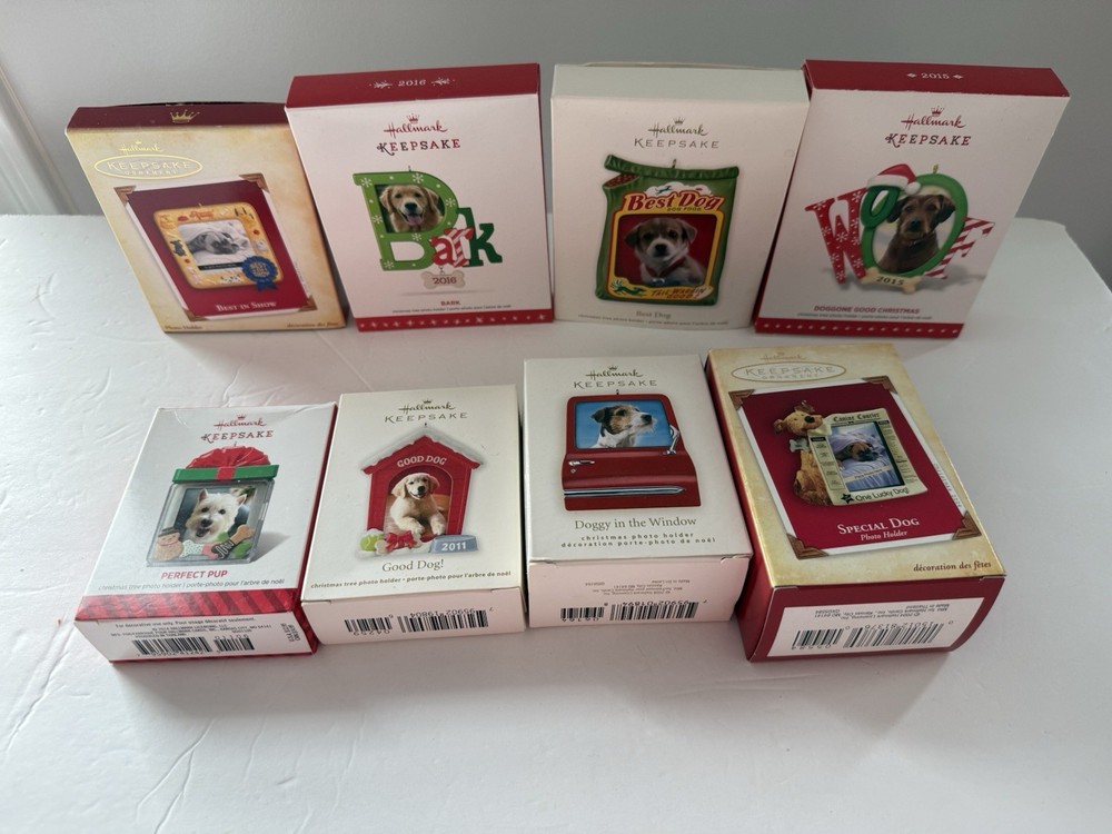 Lot of 8 Hallmark Keepsake Special Dog Photo Holder frame Christmas Ornaments 2004 2005 2008 2011 2012 2014 2015 Good preowned condition. Refer to pictures.