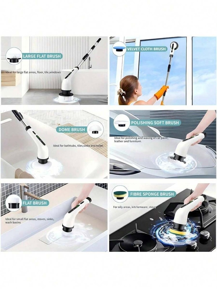 8 IN 1 Electric Spin Scrubber Cordless Power Cleaning Brush Rechargeable Cleaner