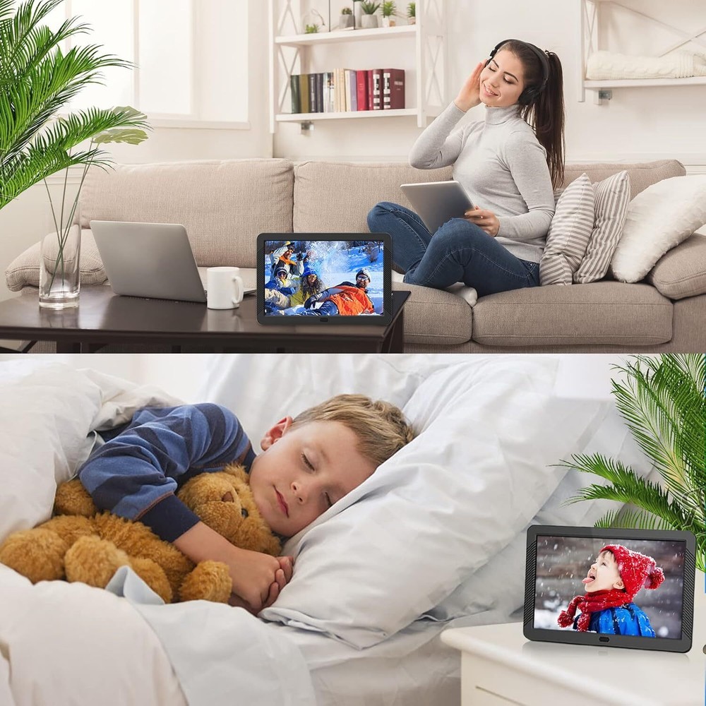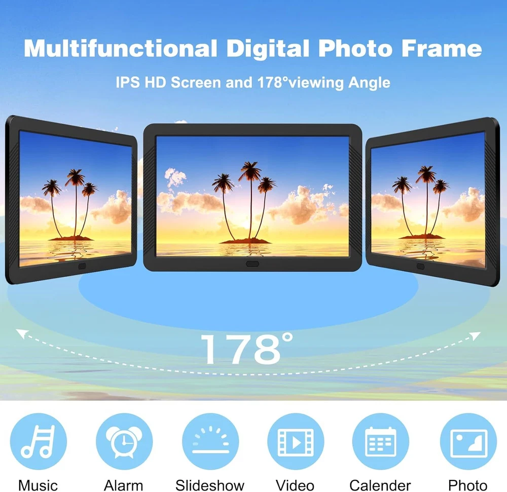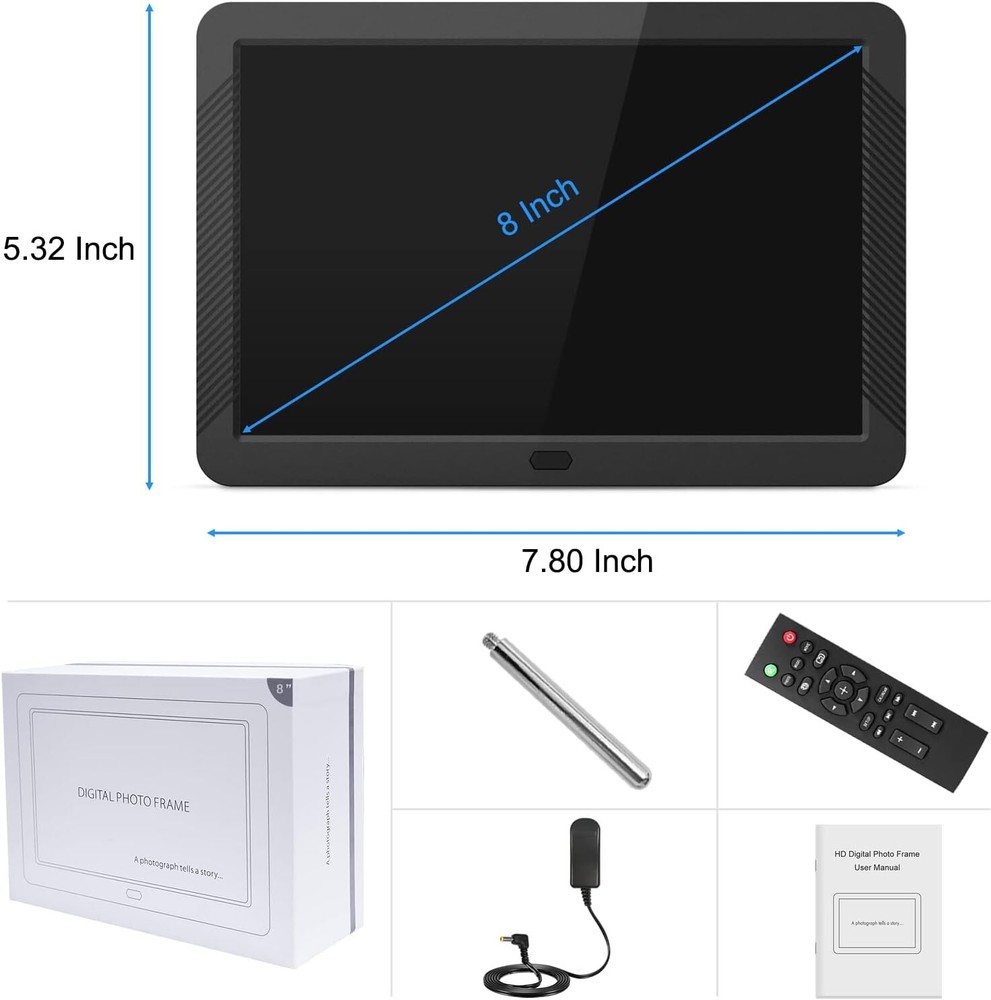 This digital photo frame is a fantastic way to relive your favorite memories! The 8-inch IPS screen delivers stunning 1920x1080 resolution with vibrant colors and wide viewing angles. It plays HD videos, supports auto-rotate, and even works as a calendar and clock. The remote control makes navigation easy, while the stereo speakers enhance the experience. Perfect for displaying photos or videos of family and friends—highly recommended for anyone who loves sharing moments in crisp, clear quality!