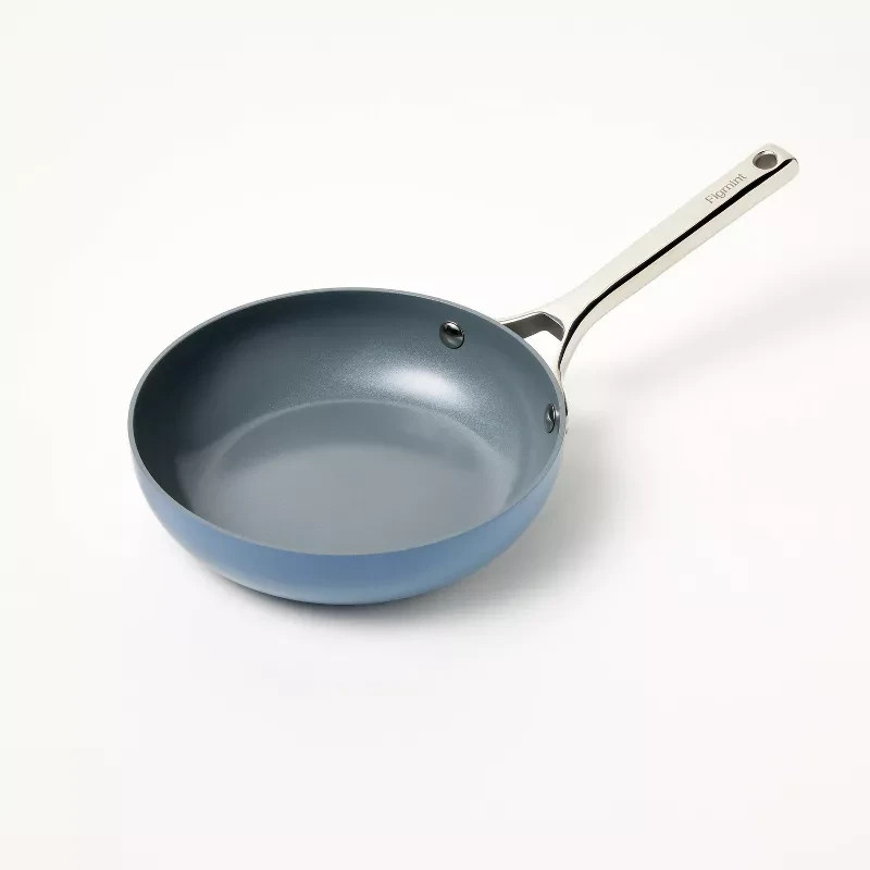 Highlights 8in ceramic frypan in solid hue Smooth, nonstick surface Aluminum construction is ideal for even heat distribution To protect nonstick cooking surface, use only with silicone, nylon or wood cooking utensils Induction, gas and electric stove compatible Dishwasher safe Oven safe up to 500 degrees F Made with no PFOA or PTFE