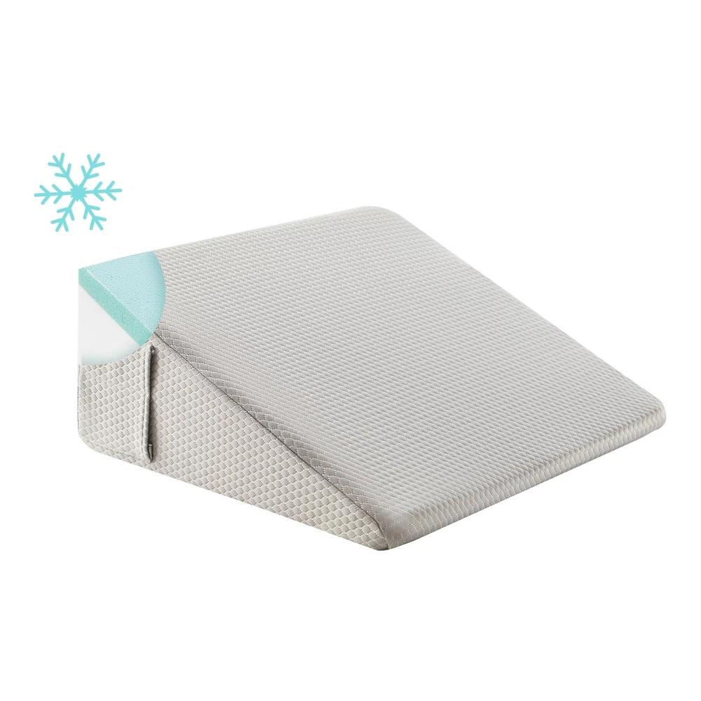 Wedge Pillow for Sleeping, 8 inch Elevated Support Bed Wedge Pillow, Breathable Triangle Pillow Wedge with Cooling Memory Foam Top - Removable Washable Cover, Grey 2 Layers of Comfort Foam: Our wedge pillow features two layers of premium comfort foam. The top layer consists of gel-infused memory foam, keeping you cool and comfortable throughout the night. And high-density premium foam base offers sturdy support and durability. Breathable & Washable Cover: The pillow's breathable cover allows for optimal airflow, ensuring a cool and comfortable sleep experience. Plus, it's easily removable and machine washable for hassle-free maintenance. 2 Pockets & Portable Design: Our triangle pillow wedge features two built-in pockets, ideal for storing remote controls, phones, or glasses. Additionally, its portable handle allows you to take it with you wherever you go for on-the-go comfort and support. Upgraded & Certified: We've upgraded our foam wedge pillow to ensure the highest quality standards. Standard 100 certified by CertiPUR-US and Oeko-Tex, giving you peace of mind knowing you're purchasing a reliable and trustworthy product.