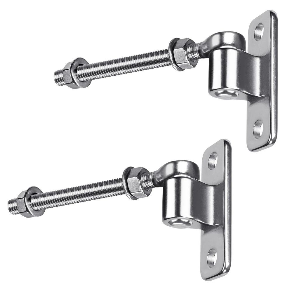 gate hinges made of 304 stainless steel, cast: one piece with non-weld for long life, available in 6''/8''/10'' j bolt gate hinge, to meet your fence gate repair or installation require. Heavy Construction: Made of 304 stainless steel protects against rust and corrosion, one-piece mold without welding ensure long-lasting performance, which is the perfect solution for your gate installation and repair needs. Widely use: This metal gate hinges is designed to offer better durability and reliability for all types of gates, including wood, metal, and vinyl gates. Size: The overall length of the J-bolt is 8'' with 5/8'' pin hinge, the threaded shaft length is 6.7", come with nuts and washers for installation; the size of gate hinge is 3.9''(L) x1. 2''(W) with DIA 5/8'' eye hinge. Package Included: 2Pcs of 8''J-bolt with nuts and washers, 2pcs of wall weldable hinges. Order with no worries: Pls contact with us any time if you have any problems about our products, we will always be there to help.