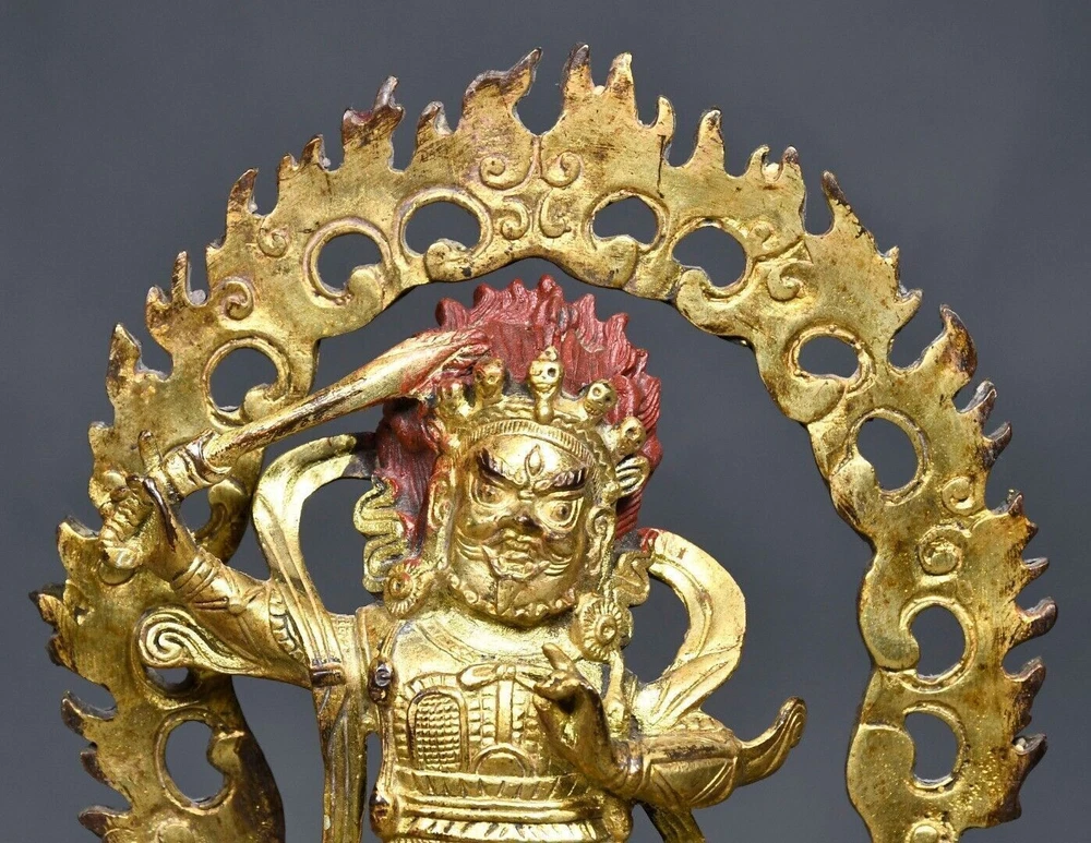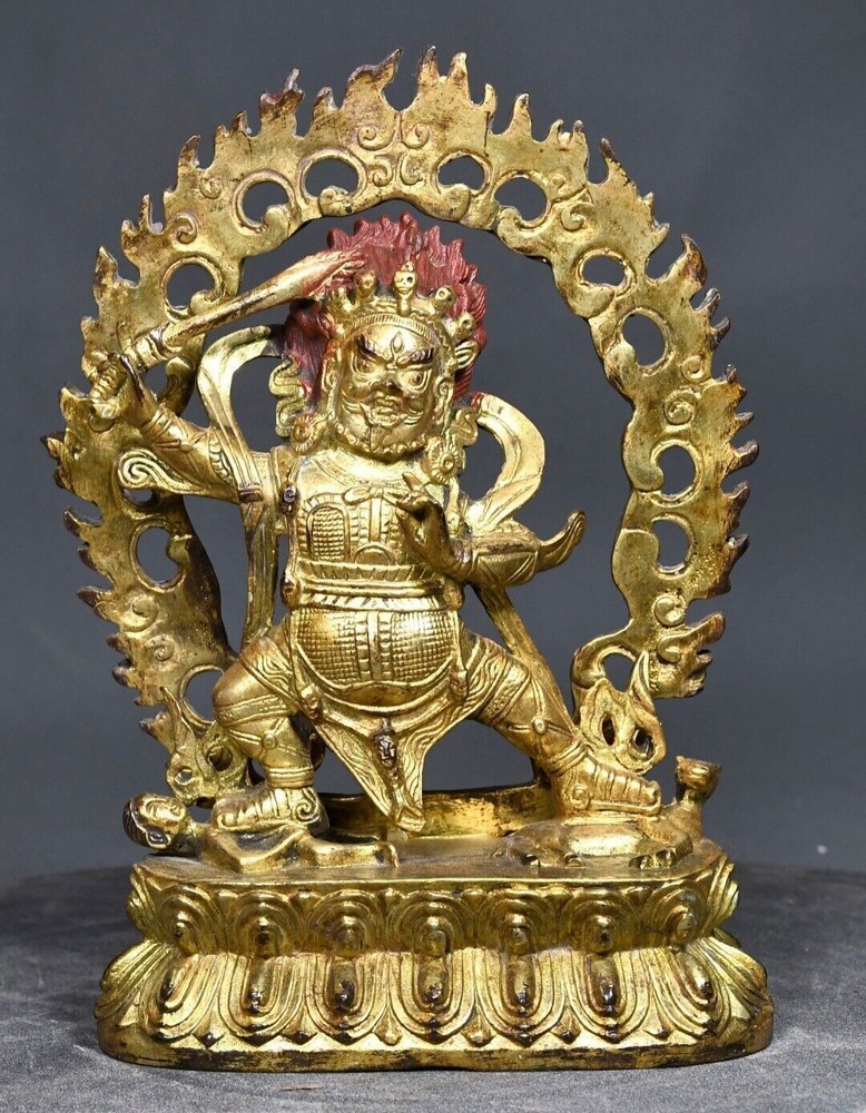 8" Old Antique Tibet Tibetan Buddhism temple Bronze gilt Mahakala Buddha statue