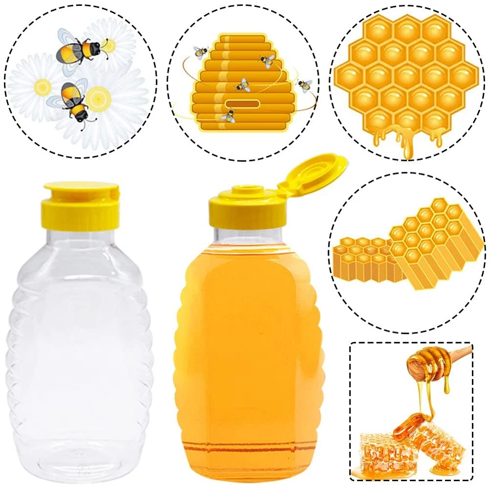 ★Package:You will get 8 pack honey jars in total,our honey jars are made from high quality plastic which is safe and durable.Great for beekeeping,these bottles are perfect if you are a beekeeper with honey from your hive box that you want to share. ★Large Capacity:With a total height of 5.9in/15cm and a diameter of 2.9in/7.5cm,the honey jar has a capacity of 16 ounces,which makes it the ideal size to honey and can reduce the need to replenish honey frequently so that saving much time greatly. ★Unique Designs:The beauty of the plastic squeezy bottle is that even if it tips over while the lid's open,the liquid stays inside,and it is not broken easily.Transparent body can show the amount of honey left,and you can label these bottles to classify. ★Easy to Clean:The bee hive honey jar shape means no honey or syrup will accumulate in impossible to reach nooks or crannies,minimizing wasted liquid.Even cleaning will not consume too much time and energy which ensures you can reuse them. ★Wide Usages:It's not only the best container for different kinds of liquids,but also prefect for friends and parents as gift.They are very practical so that your friends will use these containers frequently in their daily lives,and they will like them more and more.