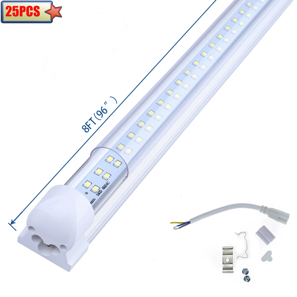 Specification: Model Name: T8 Integrated LED Tube Light Length: 8FT / 96'' Power: 72W LED Source: 2835SMD 384PCS Lumens:8640lm Base Type: Integrated (With Bracket) Beam Angle: 170 Degree Voltage: AC85-277V Housing material: Aluminum Drive: Built-in drive CRI: > 80 Power factor:>0.90 Operation temperature: -20C to 50C Life: 50,000 hours Frequency: 60Hz to 50Hz Warranty:3 Years PC cover: Clear/Milky Color temperature: Cold White (6000K-6500K) PACKAGE INCLUDE: T8 8ft 72W LED shop light Fixtures Dust Caps Connectors Screws Mount Clips Power Cables 1FT Connectors cables 1FT Key Benefits: Double row LED, which give more light output Cut Energy Costs by 60-80% Lamp Lifespan: 50,000 hrs Bright Light output Mercury free, No Health Hazards 8Pack 8FT Led Tube Light 72W T8 Integrated 8' Led Shop Light Warehouse Fixture Specification: Model Name: T8 Integrated LED Tube Light Length: 8FT / 96'' Power: 72W LED Source: 2835SMD 384PCS Lumens:8640lm Base Type: Integrated (With Bracket) Beam Angle: 170 Degree Voltage: AC85-277V Housing material: Aluminum Drive: Built-in drive CRI: > 80 Power factor:>0.90 Operation temperature: -20C to 50C Life: 50,000 hours Frequency: 60Hz to 50Hz Warranty:3 Years PC cover: Clear/Milky Color temperature: Cold White (6000K-6500K) PACKAGE INCLUDE: T8 8ft 72W LED shop light Fixtures Dust Caps Connectors Screws Mount Clips Power Cables 1FT Connectors cables 1FT Key Benefits: Double row LED, which give more light output Cut Energy Costs by 60-80% Lamp Lifespan: 50,000 hrs Bright Light output Mercury free, No Health Hazards Easy Installation: 1. Remove Old Fixture (If needed) 2. Install Mounting Clips to Doors 3. Snap LED Tube Light into Mounting 4. For multiple lights installation, Connect other end of the Tube light output to second light input and so on, You can connect 4 Tube lights utmost with one power source 5. Connect to Power Source Application / Usage: Reach-In Coolers / Freezers Multi-Deck Cases , Bakery Display Cases Meat Coolers , Industrial / Medical Refrigeration Show Case , Super Market, School, Factory, Residential , Commercial Bus, shuttle, railcar passenger interiors,Places where need energy-saving and high-color rendering index lighting Payment Delivery details Terms of sales About us Contact us Payment 1.We only accept payment by Paypal. 2.If you pay by paypal with E-check, it normally takes 5 business days to clear, Once your E-check payment clears, your item will be dispatched within 1-2 working days. 3.Payment must be received within 7 days after the auction ended. Delivery details 1.All orders ship within 24 hours after receiving your payment. 2. Fedex shipping from our US warehouse, takes about 3-5business days for delivery. 3.Please verify your address during checkout. We are not responsible for any wrong or undeliverable addresses. Terms of sales We strive to ensure 100% satisfaction for each and every one of our customers. we offer a 30-day 100% money-back guarantee on all eBay orders. If your item isn't just as you wished, simply send it back to us and we'll refund or replace your item. Please note that all returns must be authorized by our Customer Service department. please contact us though message first if you have any problem . About us 1.Our working time is Monday to Friday. 9.30-18.30 BeiJing time am. 2.We will reply you within 24 hours(1work days). 3.We are always been trying to provide best service and reliable products for every customer. Contact us 1. If you are dissatisfied for any reason, please do not be quick to leave negative/neutral feedback. We work hard to make sure EVERY CUSTOMER 100% SATISFIED and resolve any problem for you and always leave positive feedback to all our customers. 2. If you are satisfied with the product you received,please leave us positive feedback and 5 scores DSR. Features Energy Saving, Heat Resistant, Lead-Free (RoHS), Wide Beam Connectors Integrated Manufacturer Warranty 3 years Custom Bundle Yes MPN Does Not Apply Voltage 110 V Item Length 8FT Lighting Technology LED IP Rating IP54 Labels & Certifications Energy Efficient, Energy Saving, Energy Star Lumens 8640lm Country/Region of Manufacture China Bulb Shape Tube Material Aluminum, Plastic Beam Angle 270 Degrees Model T8 8FT Color Temperature 6500K Light Color Clear White Number of Bulbs 382 LED Chip Code 2835 Finish Clear Unit Quantity 12 Lights Bulb Shape Code T8 Brand kinglight Style Modern Energy Star A+++ Indoor/Outdoor Indoor Bulb Life Hours 50,000 hrs + Output Voltage 85-277V Type Lamp Bulb EC Range A+++ - G Bulb Wattage 72W