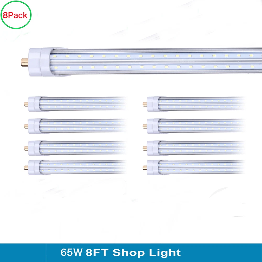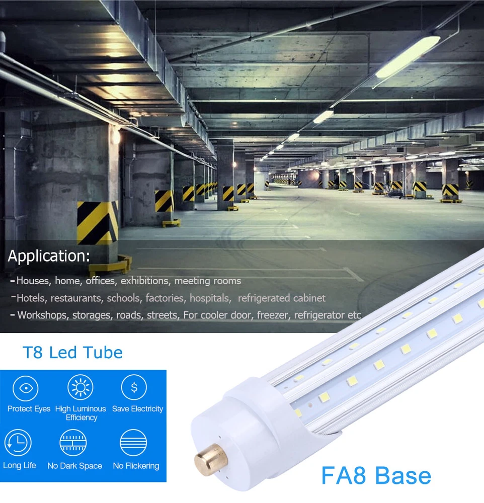 Specification 1.Base: FA8 Base 2.Shell material: Al+PC 3:Heat sink material: aluminum, Aero alloy 4:Color temperature: 6000K-6500K 5:Color: Cold white 6:Luminous flux: 7800LM 7:Output: AC 85-265V 8:Power: 65W 9:Light source: SMD 2835 10:Life: more than 50,000 hours Special note:Installation does not need ballast, if replace the original energy-saving tube, please delete the ballast Package Include: 8x 8ft FA8 V shaped led tube light 8Pack 8FT Led Tube Light T8 Single Pin 65W FA8 V-Shape Led Shop Light Bulb 6000K Specification 1.Base: FA8 Base 2.Shell material: Al+PC 3:Heat sink material: aluminum, Aero alloy 4:Color temperature: 6000K-6500K 5:Color: Cold white 6:Luminous flux: 7800LM 7:Output: AC 85-265V 8:Power: 65W 9:Light source: SMD 2835 10:Life: more than 50,000 hours Special note:Installation does not need ballast, if replace the original energy-saving tube, please delete the ballast Package Include: 8x 8ft FA8 V shaped led tube light About This Product: 1.This product is the answer to your lighting problems by replacing your existing T8/T10/T12 fluorescent light bulbs 2.This gets rid of the expensive ballast and fluorescent lights and still allows you to use the same fixtures that are already installed 3.These LED bulbs shine the light directly where it is needed and 270 degree lighting angle, lighting your space Applicable: Halls, warehouses, parking lots, workshops, stores, supermarkets, showrooms, etc. Payment Delivery details Terms of sales About us Contact us Payment 1.We only accept payment by Paypal. 2.If you pay by paypal with E-check, it normally takes 5 business days to clear, Once your E-check payment clears, your item will be dispatched within 1-2 working days. 3.Payment must be received within 7 days after the auction ended. Delivery details 1.All orders ship within 24 hours after receiving your payment. 2. Fedex shipping from our US warehouse, takes about 3-5business days for delivery. 3.Please verify your address during checkout. We are not responsible for any wrong or undeliverable addresses. Terms of sales We strive to ensure 100% satisfaction for each and every one of our customers. we offer a 30-day 100% money-back guarantee on all eBay orders. If your item isn't just as you wished, simply send it back to us and we'll refund or replace your item. Please note that all returns must be authorized by our Customer Service department. please contact us though message first if you have any problem . About us 1.Our working time is Monday to Friday. 9.30-18.30 BeiJing time am. 2.We will reply you within 24 hours(1work days). 3.We are always been trying to provide best service and reliable products for every customer. Contact us 1. If you are dissatisfied for any reason, please do not be quick to leave negative/neutral feedback. We work hard to make sure EVERY CUSTOMER 100% SATISFIED and resolve any problem for you and always leave positive feedback to all our customers. 2. If you are satisfied with the product you received,please leave us positive feedback and 5 scores DSR. Model T8-FA8 Type LED Tube MPN Does Not Apply Brand Unbranded Bulb Shape Tube/Circle Country/Region of Manufacture China Voltage AC85-277V Wattage 65W LED Chip SMD2835 Cover Color Clear Cover Beam Angle 270° Features Energy Saving Bulb Wattage 65W Light Color Cool White Color Temperature 6000K Energy Star A+++ Indoor/Outdoor Indoor Bulb Life Hours 50,000 hrs + Lumens 7800LM Output Voltage 85-277V Bulb Shape Code T8 Lighting Technology LED EC Range A+++ - G Finish Clear