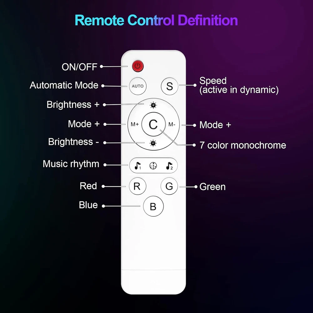 Specific Uses For Product: Indoor use only Batteries Required?: No Included Components: USB power cable*1,Remote*1,User manual*1,Hexagon lights*8,adhesiv Country of Origin: China Bulb Features: Dimmable Warranty Type: Full Warranty Control Method: Remote Style: 8 Panels C Batteries Included?: No Special Feature: Timer setting, ‎Smart app & remote control, Music sync, 200 modes Room Type: Living Room, Bedroom Finish types: Matte Lighting Method: Adjustable Number of Light Sources: 8 Number of Items: 8 Recommended Uses For Product: Decoration Light fixture form: Wall Material: Plastic Controller Type: Remote Control, iOS, Android Shade Material: Plastic Wattage: 10 watts Special Features: Timer setting, ‎Smart app & remote control, Music sync, 200 modes Installation Type: Attach adhesive pads to the back Indoor/Outdoor Usage: Indoor UPC: 313042512531 Item Weight: 1.1 pounds Voltage: 5 Volts Light Shape: Hexagonal Connectivity Protocol: Bluetooth, Wi-Fi Shade Color: Multicolor Mounting Type: Wall Mount Theme: Music Finish Type: Matte Brand: Does not apply Water Resistance Level: Not Water Resistant Product Dimensions: 3.66"L x 3.15"W x 0.79"H Unit Count: 8.0 Count Fixture Type: Non Removable Average Life: 20000 Hours Color: A. Multicolor 8PCS Type: Does not apply gtin13: 313042512531 Light Source Type: LED Light Color: RGBW(Red, Green, Blue, White) Power Source: Corded Electric Assembly Required: Yes Item model number: LT-01