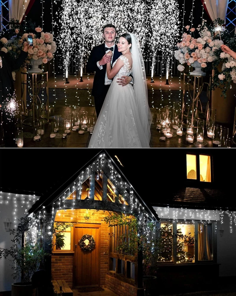 8 Pack Solar String Lights Outdoor Waterproof Each 240 Led 78ft Solar Fairy Lights Outdoor 8 Mode Led Solar Outdoor Lights Tree Lights Waterproof Copper Wire Lights for Tree Garden YardCool White Long Solar String Lights: you will receive 8 pack of LED solar string lights set, 624 ft in total, each string is 78 ft with 240 bright LED bulbs; There are 8 different lighting modes; The solar lights for trees is x 2 65 inches larger panel with 800mAh built-in battery, solar lights outdoor is more energy saving, convenient and practical 8 Lighting Modes: the solar fairy string lights have on/ off buttons and 8 different lighting modes; The on/ off button is easy to find and use; You can set the b mode at different times to meet your diverse decorative needs; You can also save your satisfactory mode settings by pressing the mode button; The built-in memory storage chip will keep your last setting mode for you to use directly next time Energy Saving and Efficient Solar Decoration: the outdoor tree lights adopt solar energy without additional charging operation; Solar string lights with 180 degree, adjustable solar panels, which can better absorb sunlight and turn into brighter lights to illuminate your yard; Charging is completed within 3 hours and can work up to 10 hours to make your night more beautiful and romantic IP44 Waterproof Function: the solar lights and panels have IP44 waterproof rank, which can resist rain and snow weather; Please do not immerse the panels in water; Waterproof copper wire lights are suitable for indoor and outdoor; You can DIY any shape you like to add atmosphere to your holiday life Wide Application: solar garden twinkle lights are a nice outdoor decoration; It can make you supplement external lights at night, let you see the beauty of flowers and the world, add atmosphere to your patio party; It is widely applied in hotels, gardens, balconies, holiday dinners, birthdays, Christmas and various parties