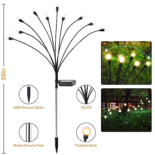 Type of Bulb: LED Batteries: 1 AA batteries required. (included) Brand: Does Not Apply Manufacturer: Does Not Apply Item Height: 28.35 Date First Available: January 10, 2024 Batteries Included: Yes Recommended Uses For Product: Outdoor Pattern: Solid Number of Light Sources: 80 Customer Reviews: 4.2 out of 5 stars Mounting Type: Floor mount Number of Items: 80 Power Source: Solar Powered Usage: Outdoor use only gtin13: Does Not Apply Frame Material: Plastic Item Length: 2.33 Item model number: 8889 Battery Cell Type: NiMH Size: 8 Pack MPN: Does Not Apply Color: Warm White Special Features: Energy Efficient UPC: Does Not Apply Light Color: Warm White EAN: Does Not Apply Item Width: 2.33 Batteries Required: Yes Type: Does Not Apply Item Weight: 2.68 pounds Style: Modern Part Number: 8889 Product Dimensions: 2.33 x 2.33 x 28.35 inches