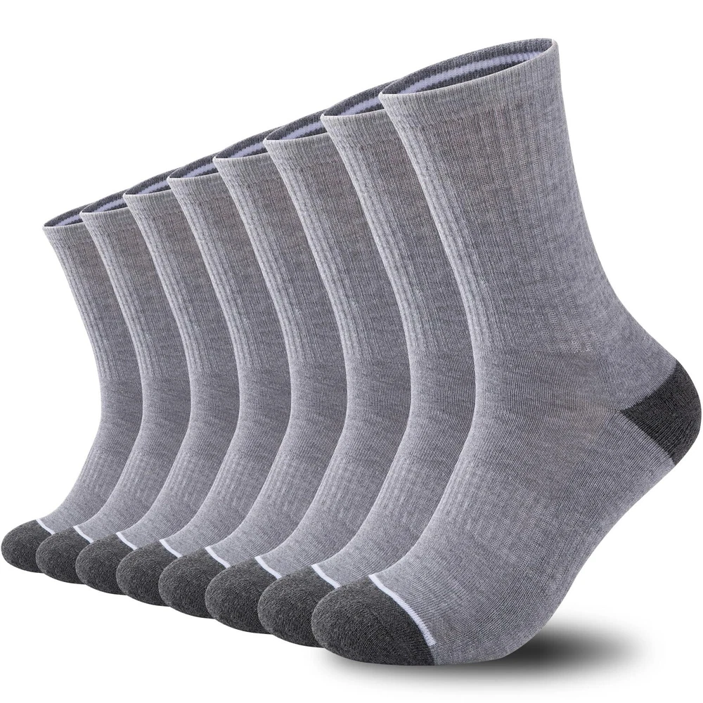 [HIGH PERFORMANCE CREW SOCKS]: Mens Crew Socks Made of Premium Cushioned Polyester, Spandex and nylon. Suit for US Mens Shoe Size 6-12(Sock Size 10-13). [FULL CUSHIONED ATHLETIC SOCKS]: Athletic Crew Socks provide better support, and the soft plush sole cushion structure provides extra durability and softness in high-wear areas, reducing the impact on knees. [ANTI-SLIP WORK SOCKS]: Elastic cuffs can fix the socks well, you will feel comfortable during working, training and walking. Prevent slipping, condensation and foaming, and ensure smoothness, comfort and stability. [MOISTURE WICKING & BREATHABLE] : crew socks are made of high quality fabrics, which can quickly absorb and absorb water. This helps keep your feet dry all day. [MATCH FOR ALL OCCASSION]: All Pack included 8 pairs. Perfect high-performance crew socks, suitable for sports, running, cycling, jogging, strength training, outing, walking, football, gym training and golf. Simple style is suitable for daily wear and exercise of adults and teenagers.
