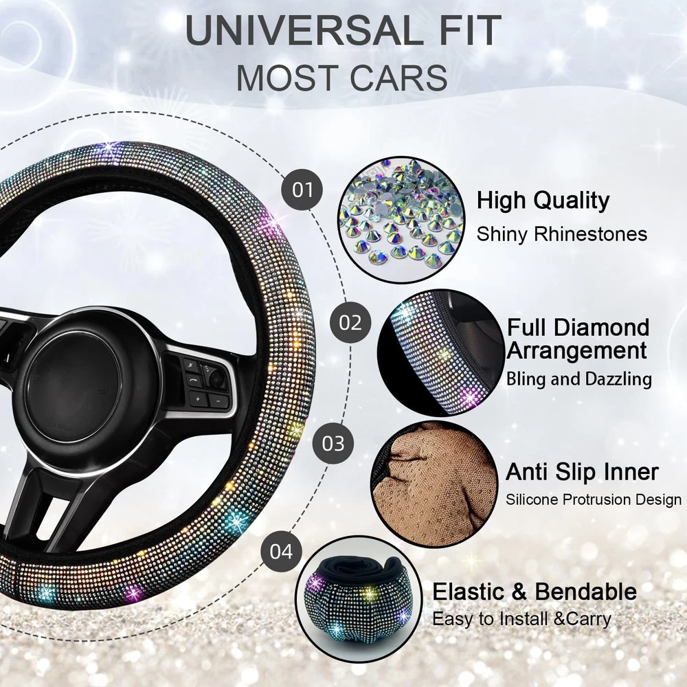 Menu Other Items Feedbacks About Us Contact Us Add To Favorites 8 Pcs Bling Car Accessories Set for Women, Bling Rhinestone Diamond Steering Wheel Cover, Sparkly Seat Belt Covers, Bling Gear Shift Cover, Universal Fit Most Cars (Multicolor Diamond) Package include: the NBTEPEM bling car accessories set is value for money, you will receive: 1pc bling steering wheel cover, 2 pcs seat belt covers, 1 pc gear shift cover, 2 pcs car coasters and 2 pcs start button ring. Luxury Rhinestone Design: the NBTEPEM bling car accessories set is designed with premium sparkly rhinestones, which is a perfect car decoration to make your car more fashionable and luxurious. Universal Size: designed in universal size, suitable for most cars. Install in minutes: humanized design, easy installation, just place them to the corresponding position and you will own a Stylish & charming car interior. Exquisite Gift: the NBTEPEM 8pcs bling car accessories set will be a perfect gift for your family, friends and more on different festivals. When someone else own a new car, it can be a satisfactory gift for him/her Product Description 8 pcs BLING CAR ACCESSORIES SET NBTEPEM is dedicated to providing customers with the high quality products. TOP craftsman rhinestones, premium materials, our products will be the good choice to decorate your car, and make you have a good mood while driving. About NBTEPEM NBTEPEM is dedicated to providing customers with the high quality products. TOP craftsman rhinestones, premium materials, our products will be the perfect choice to decorate your car, and make you have a good mood while driving. It's also a ideal Gift for women and girls. High Quality Craftsmanship Meet the Needs of Various Users Innovative Design NBTEPEM 8 PCS Pretty Shining Rhinestones Bling Car Accessories Set for Women Universal Size Fit For Cars, Suvs, Trucks, Sedans, Vans 1 pc Bling Diamond Steering Wheel Cover 2 pcs Bling Diamond Seat Belt Covers 1 pc Bling Diamond Gear Shift Cover 2 pcs Bling Diamond Cup Holder Coasters 2 pcs Bling Diamond Start Button Rings High Quality Diamond Craftsmanship Universal Fit for suvs, sedans, vans, trucks Premium Shining Rhinestones Diamond Easy to Install and Use 8 pcs Bling Cute Car Accessories for Women Girls 1 pc Bling Diamond Steering Wheel Cover Designed with thousands of sparkly rhinestones. Made of flannel material, soft and comfortable. Universal Standard size: 14.5-15 inch/ 37-38 cm. 2 pcs Bling Diamond Cup Holder Coasters Made of sparkling rhinestone and high quality PVC material Wide application, 2.75 inch diameter fits 99% cars, boat, and trucks, also can be used at home/office. 2 pcs Bling Diamond Seat Belt Covers Designed with thousands of sparkly rhinestones. Made of flannel material, soft and comfortable. Universal Fit for suvs, sedans, vans, trucks 1 pc Bling Diamond Gear Cover Designed with thousands of sparkly rhinestones. Made of flannel material, soft and comfortable. Universal Fit for suvs, sedans, vans, trucks 2 pcs Bling Diamond Start Button Rings Made of High Grade Aluminum Alloy and Rhinestone. Suitable for round push starter buttons & key starter ignitions, and also suitable for other car knobs, steering wheels, A/C buttons, VOL buttons & etc. Easy to Install Install in minutes: humanized design, easy installation, just place them to the corresponding position and you will own a Stylish & charming car interior. Item Specification Item model number -Bling car accessories set 8 Vehicle Fitment Code UNV Color Multicolor Diamond Country of Origin China Manufacturer Part Number -Bling car accessories set 8 Vehicle Fitment Note Universal fit for most cars, trucks, vans, and SUVs Item Weight 11.3 ounces Material Rhinestone Vehicle Service Type Van, Car, SUVs, Truck Automotive Fit Type Universal Fit Model -Bling car accessories set 8 Package Dimensions 9.65 x 6.81 x 2.09 inches Dimensions Shipping Returns Additional Info Product Dimensions: 6.81 inches x 9.65 inches x 2.09 inches. Weight: 11.3 oz Fast shipping is very important for us. Our standard shipping service is FREE. Your order will be shipped within 1-3 business days upon full payment received. Most items are delivered within 3-5 business days, however, please allow 3-10 business days. We are shipping only to USA. We only ship to the confirmed Paypal address. We reserve the right to cancel any order for any reason at any time. We are not responsible for undeliverable addresses. We offer a 30 day return policy from checkout winning date. Your satisfaction is guaranteed! If for any reason you are unhappy with your item, just return it within 30 days for a full refund, minus shipping cost. Please contact us prior to initiating a return so that we can issue you a refund authorization. Items defective upon receipt must be packaged in their retail packaging as if new and returned with a detailed description of the problem. Return shipping fees are not refundable. We reserve the right to decline any returns if the above guidelines are not followed. All of our items, unless otherwise stated, will only run on 120 volts. Please check to make sure your country complies with these specifications. If you have a problem or question regarding your transaction please contact us before leaving any type of feedback. We will work with you to resolve any problem you may have.