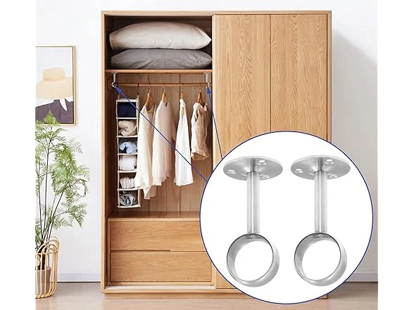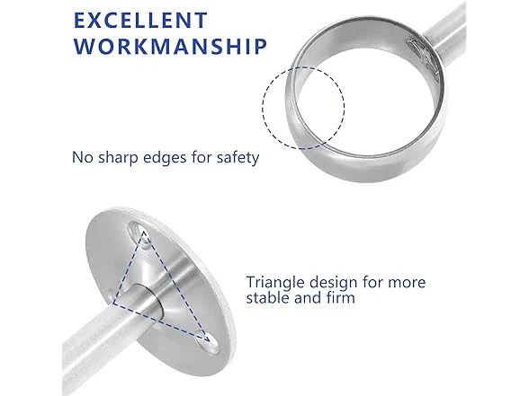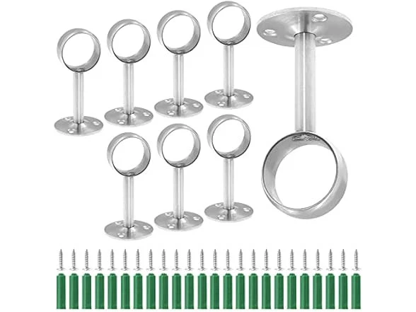 8 Pcs Ceiling Mount Curtain Rod Bracket Condition: New Color: Brushed Finish Size: 1-1/4 Inch Features ★ Check Size First: Ceiling mount closet rod holders can fix round rods up to 1-1/4”/32mm in diameter. The shortest distance from the ceiling to the pole is 2.16”/55mm. The loading capacity is up to 20 pounds for per bracket. ★Quality Materials: Curtain rod socket constructed of heavy duty stainless steel with the matte black surface for sturdy, durable, anti-rust and anti-corrosion. Although you put it in a humid place, it still maintains wonderful flexibility over time. ★ Triangle Design: Each curtain rod bracket has 3 holes at the same distance, which are connected like a triangle to make it more stable and firm. ★ A wide range of applications: Flange rod brackets is suitable for closet storage rod, ceiling mount curtain rod, shower rod, clothes rod, hanging rod and etc. ★About Us: Our store commits to providing exceptional hardware products. We firmly believe that quality is the foundation of success. That's why we strive to offer meticulously designed and reliable products to meet your various needs. Thank you for your interest and support! Specs In the Box: (1) 8 Pcs Ceiling Mount Curtain Rod Bracket