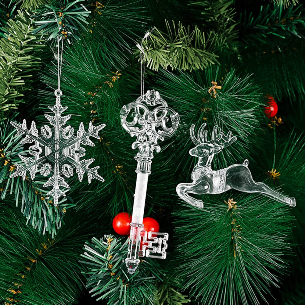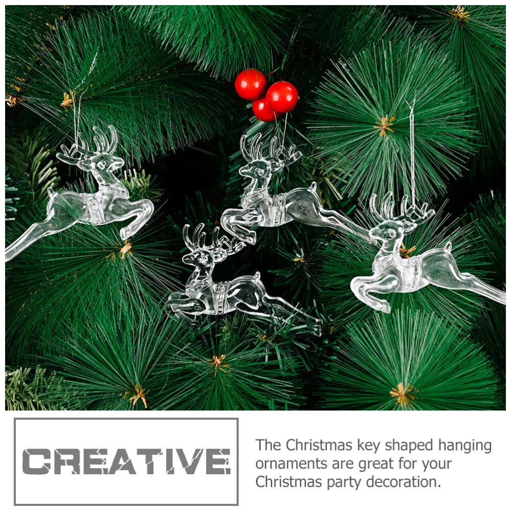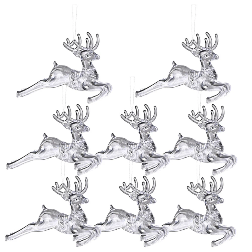 8 Pcs Clear Glass Deer Christmas Ornaments Hand Blown Animal Flying Pendant