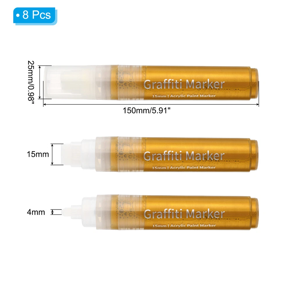 Document The various thick markers are vibrant brightly colored and suitable for DIY design, arts and craft projects. Can be used on rock painting, paper, posters, signs, canvas, wood, metal, walls, glass, clothes, ceramics, murals, stone, mug, plastic, 3d prints, DIY crafts art supplies and a variety of surfaces. Can be given as a gift to artists, graffiti enthusiasts, craftsmen, designers, etc.Specification: material: plasticSize: 15x2.5cm / 5.9x1 inchPen size: 15x4mm / 0.59x0.16 inchAdvantage: The thick acrylic paint markers are brightly colored, easy to use, dry quickly, and work well even on dark paper. The 15mm thick felt tip marker large areas evenly and smoothly without skipping or breakage. The paint flows well with no extra drips and pool, making it perfect for creating larger pieces of art.Instruction: 1. You need to shake the ink well before use, and then press the top firmly until the white tip is filled with color paint. 2. Press gently when writing to help the ink flow. Acrylic paint dries and can be left on a variety of surfaces. 3. It can be cleaned or wiped with water when it is wet.NOTE: Once the permanent marker is activated, secure the cap when not in use and keep the marker tip up at all times. 8 Pcs Graffiti Markers, 15mm Golden Poster Markers Thick Acrylic Paint Pen The various thick markers are vibrant brightly colored and suitable for DIY design, arts and craft projects. Can be used on rock painting, paper, posters, signs, canvas, wood, metal, walls, glass, clothes, ceramics, murals, stone, mug, plastic, 3d prints, DIY crafts art supplies and a variety of surfaces. Can be given as a gift to artists, graffiti enthusiasts, craftsmen, designers, etc. Specification: material: plastic Size: 15x2.5cm / 5.9x1 inch Pen size: 15x4mm / 0.59x0.16 inch Advantage: The thick acrylic paint markers are brightly colored, easy to use, dry quickly, and work well even on dark paper. The 15mm thick felt tip marker large areas evenly and smoothly without skipping or breakage. The paint flows well with no extra drips and pool, making it perfect for creating larger pieces of art. Instruction: 1. You need to shake the ink well before use, and then press the top firmly until the white tip is filled with color paint. 2. Press gently when writing to help the ink flow. Acrylic paint dries and can be left on a variety of surfaces. 3. It can be cleaned or wiped with water when it is wet. NOTE: Once the permanent marker is activated, secure the cap when not in use and keep the marker tip up at all times. Hot Item Payment 1.We accept eBay payment . 2.Payment must be received within 7 business days of auction closing. Shipping 1.We ship to your eBay or Paypal address. Please make sure your eBay and Paypal address is correct before you pay. 2.Items will be shipped within 1-3 business day when we received payment. 3.Delivery time depends on destination and other factors. Description Policy 8 Pcs Graffiti Markers, 15mm Golden Poster Markers Thick Acrylic Paint Pen The various thick markers are vibrant brightly colored and suitable for DIY design, arts and craft projects. Can be used on rock painting, paper, posters, signs, canvas, wood, metal, walls, glass, clothes, ceramics, murals, stone, mug, plastic, 3d prints, DIY crafts art supplies and a variety of surfaces. Can be given as a gift to artists, graffiti enthusiasts, craftsmen, designers, etc. Specification: material: plastic Size: 15x2.5cm / 5.9x1 inch Pen size: 15x4mm / 0.59x0.16 inch Advantage: The thick acrylic paint markers are brightly colored, easy to use, dry quickly, and work well even on dark paper. The 15mm thick felt tip marker large areas evenly and smoothly without skipping or breakage. The paint flows well with no extra drips and pool, making it perfect for creating larger pieces of art. Instruction: 1. You need to shake the ink well before use, and then press the top firmly until the white tip is filled with color paint. 2. Press gently when writing to help the ink flow. Acrylic paint dries and can be left on a variety of surfaces. 3. It can be cleaned or wiped with water when it is wet. NOTE: Once the permanent marker is activated, secure the cap when not in use and keep the marker tip up at all times. Hot Item Payment 1.We accept eBay payment . 2.Payment must be received within 7 business days of auction closing. Shipping 1.We ship to your eBay or Paypal address. Please make sure your eBay and Paypal address is correct before you pay. 2.Items will be shipped within 1-3 business day when we received payment. 3.Delivery time depends on destination and other factors.