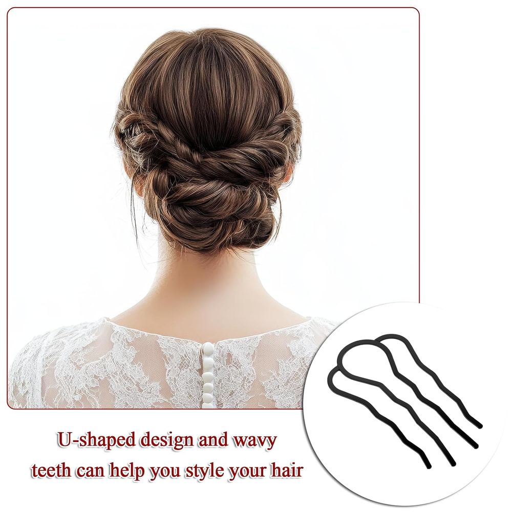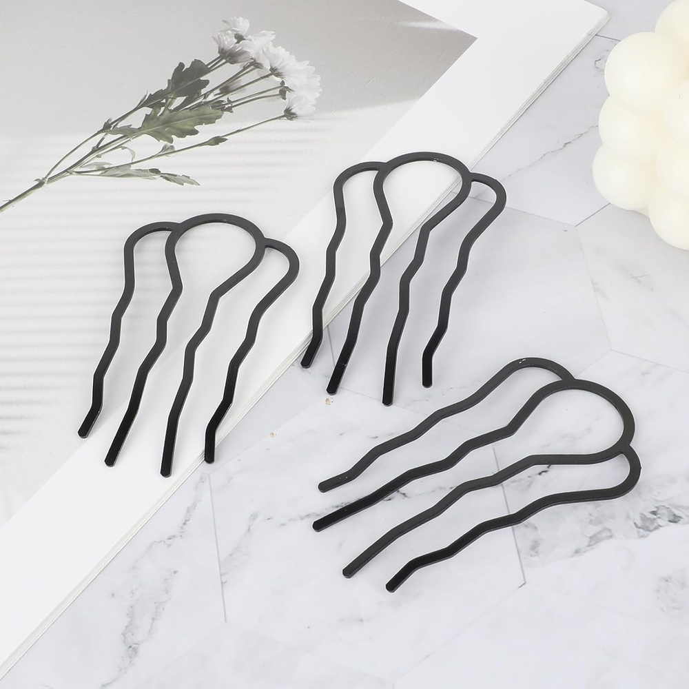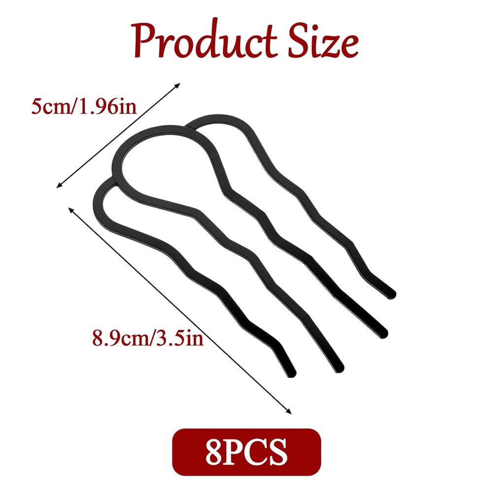 8 Pcs Hair Side Combs, Hairpins for Updos, 4 Prong Metal Updo Hair Pins, Black U