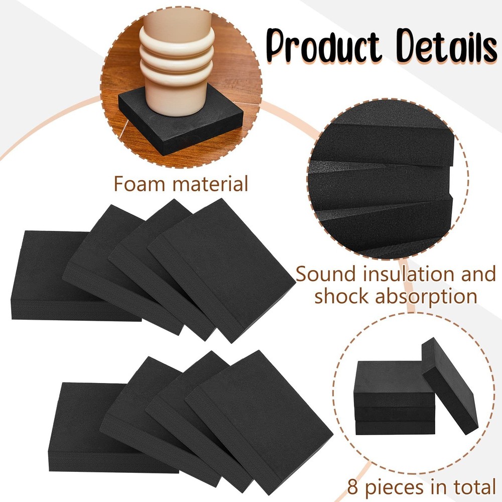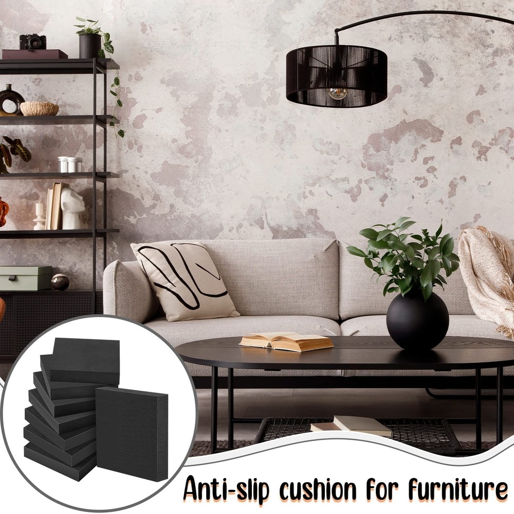8 Pcs Non Slip Furniture Pads 4" x 4" x 3/4" Thick Foam Rubber Pad Heavy Duty Furniture Grippers Anti Vibration Rubber Feet Mat Floor Protectors for Hardwood Floors Washing Machines Chair Bed Table Product Details Brand: Fabbay Material: Plastic, Rubber Color: Black Surface Recommendation: Hardwood, Tile Shape: Square Product Dimensions: 8"L x 8"W x 1.5"Th Number of Items: 8 Recommended Uses For Product: Chair, Table Special Feature: Resistant Number of Pieces: 8 Unit Count: 8.0 Count Manufacturer: Fabbay Part Number: FM-221122-H Item Weight: 3.84 ounces Item Package Quantity: 8 Special Features: Resistant Date First Available: November 22, 2022 What You Will Obtain: you will get 8 pieces of about 4" x 4" x 3/4" thick square foam rubber pads, sufficient quantity meeting your daily use; You could take good advantage of them for protecting your floor as long as you need Nice Texture: made of EPDM rubber and plastic, high density, long lasting, wear resistant and waterproof, these nonslip pads for furniture are suitable for long term use; You do not need to worry about fade or break easily, just use with confidence Wide Function: the non slip rubber pad can effectively protect the floor, absorb shock and sound, and prevent sliding and moving; In this way, when you need to use your chair or table without disturbing others' rest Extensive Usage: these slip resistant furniture pads can be applied for many kinds of equipment feet; With the square design, they can well keep your furniture from sliding, and they can fully cover your furniture; Please confirm the size before ordering Housewarming Gifts: you can prepare these floor protectors for chairs for your colleagues, relatives, fellows, family members and more in advance, a thoughtful and practical tool for home; They will feel happy when receiving them Features: These non slip furniture grippers are so lightweight and compact that you can carry them around where you need, such as camping, vacation, picnic, social gatherings and more, easy to use and apply. This kind of furniture protector is also very suitable for students in the classroom, because there are always many problems with their desks, so you can apply them to keep your table stable. Specifications: Material: EPDM rubber and plastic Color: black Size: about 4" x 4" x 3/4" Package includes: 8 x Non slip square furniture pads Notes: Manual measurement, please allow slight errors on size. The color may exist a slight difference due to different screen displays. Please confirm the size before ordering.