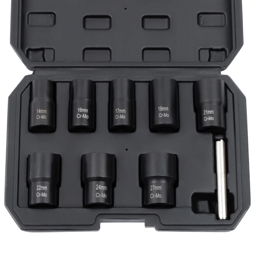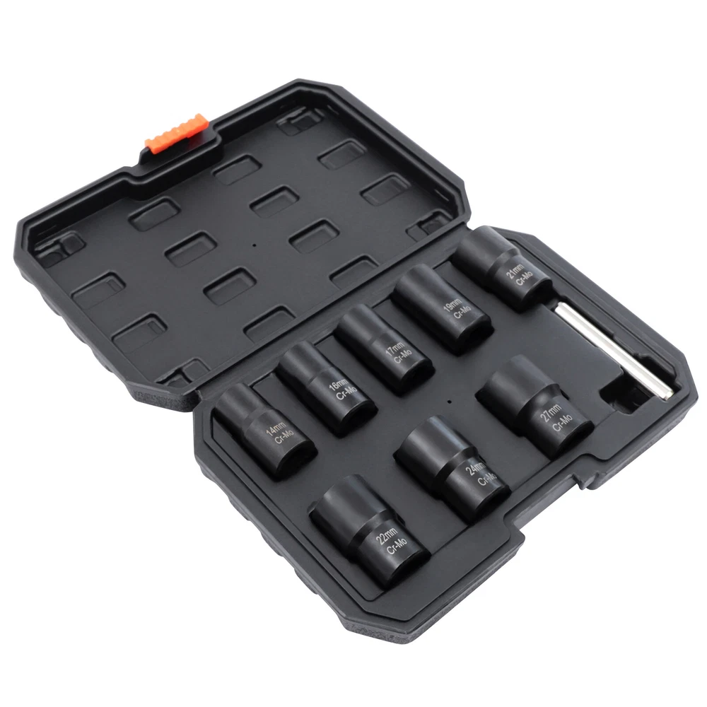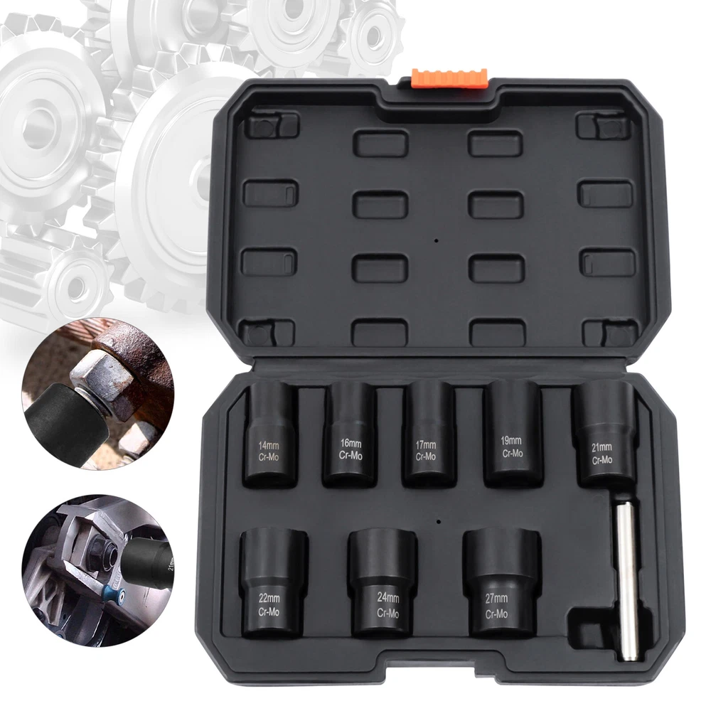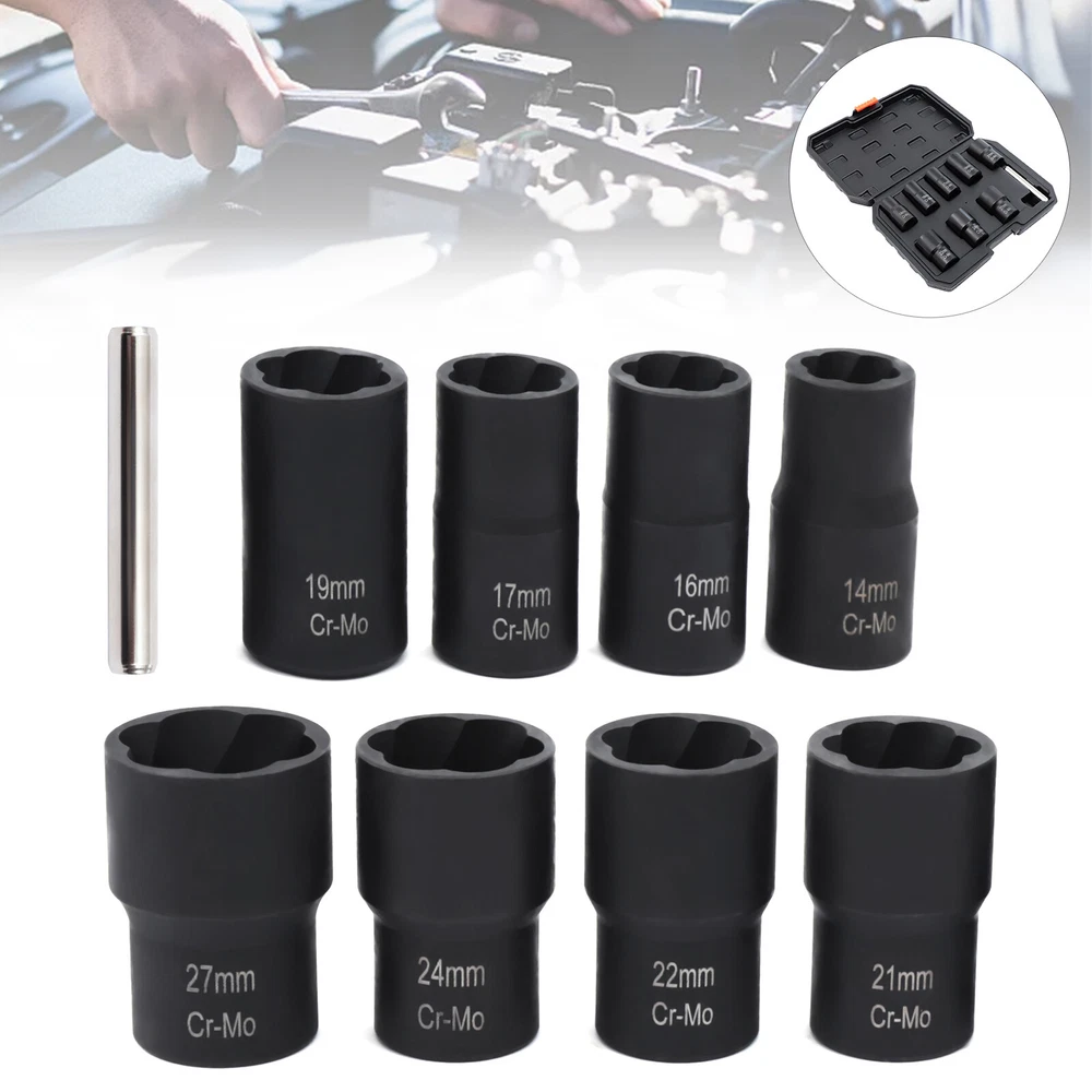 Description What if a bolt or nut is rusted or damaged and cannot be removed with a wrench? Then you'll need a bolt extractor that removes them easily. Our bolt extractor kit comes in 8 different sizes to fit different diameter nuts or bolts. The 42Cr-mo material and manganese phosphate surface treatment make these bolt extractors very strong and durable with long service life. This will be a good helper for you. Key Features Strong and Durable: The item is made of 42Cr-mo, which is relatively strong and stable. It is also not easy to damage or rust under proper use and is very durable. Ergonomic Design: This cylindrical rod is a very ergonomic design. It is smoother and more comfortable to hold while you are working. You will not feel fatigued even after long hours of use, givin 8 Pcs Wheel Lug Nut Remover Remove Damaged Locked Nuts Bolts Extractor Tools NEW Description What if a bolt or nut is rusted or damaged and cannot be removed with a wrench? Then you'll need a bolt extractor that removes them easily. Our bolt extractor kit comes in 8 different sizes to fit different diameter nuts or bolts. The 42Cr-mo material and manganese phosphate surface treatment make these bolt extractors very strong and durable with long service life. This will be a good helper for you. Key Features Strong and Durable: The item is made of 42Cr-mo, which is relatively strong and stable. It is also not easy to damage or rust under proper use and is very durable. Ergonomic Design: This cylindrical rod is a very ergonomic design. It is smoother and more comfortable to hold while you are working. You will not feel fatigued even after long hours of use, giving you great comfort. Optional Sizes: This item is equipped with 8 different diameter bolt extractors. You can choose bolt extractors with different diameters according to the size requirements of the bolts to be removed. Manganese Phosphate Treated Surface: The surface of these bolt extractors is treated with manganese phosphate, which improves the abrasion and corrosion resistance of the item. This gives the item a longer service life. Reverse Spiral Design: These bolt extractors have a reverse spiral design inside, which allows for better tucking and clamping of damaged nuts. So they can be easily removed. Easy to Carry: This item has a toolbox that is easy and convenient for you to take to the workplace you like without much effort. It is a good helper for you to improve work efficiency. Great Helper at Work: This kit can help you to take out the damaged nuts or bolts easily. This is very time and effort-saving and is a good helper at work. Guaranteed Customer Service: We aim to provide quality products and services. If you have any problems, please feel free to contact us. We will reply and solve the problem for you as soon as possible. Details Toolbox: This item comes with a toolbox that will keep these bolt extractors well organized. So these bolt extractors can be easily stored and carried. Clear Markings : These bolt extractors have diameter numerical markings that are laser engraved with great clarity. This makes it easy for you to find a suitable diameter bolt extractor. Application This kit can be used in factories, garages, and other places to remove damaged nuts and bolts of various sizes. Specifications Color: Black Material: 42Cr-mo Surface Treatment: Manganese Phosphate Gross Weight: 1.6kg/3.53 lbs Net Weight: 1.2kg/2.65 lbs Toolbox Size: 24*16.5*5cm/9.5*6.5*2" Bolt Extractor Diameter: 14mm/0.55"; 16mm/0.63"; 17mm/0.67"; 19mm/0.75"; 21mm/0.83"; 22mm/0.87"; 24mmm/0.94"; 27mm/1.06" How to Use Choose a bolt extractor with a diameter comparable to the nut or bolt that needs to be removed. Attach a drill to the bolt extractor and attach the end with the reverse spiral to the bolt or nut. Repeat the 360° rotation and the nut or bolt can be removed. If the damaged nut or bolt is stuck inside the extractor, you can use a rod to knock it out. Package Included 8* Bolt Extractors 1* Rod 1* Toolbox Notes Please allow the slight color difference caused by the shooting light and 1-3cm error due to manual measurement, and make sure you do not mind before you order. Payment Delivery details Terms of sales About us Contact us Payment We accept ebay payment 。 Fees such as import duties, taxes are not included in the item price or shipping costs. These charges are the buyer's responsibility. Delivery details Shipping: 2-9 working days to: USA Terms of sales We maintain high standards of excellence and strive for hundred percent customer satisfaction. Feedback is very important to us. We hope that you contact us immediately before you give neutral or negative feedback, so that we can address your concerns. It is impossible to address issues if we do not know about them! About us Your satis faction is our ultimate goal. We work hard to earn your trust and future business. Our certified technicians have tested each item before shipping. The unit comes with 1 year limited warranty on all manufacturing defects. a) If you receive a defective item, you may return it or ask for a discount. Please contact us within 14 days after you receive the package. b) What you returned must be intact and in its original packaging as re? u. Customer is responsible for shipping costs of the returned item. c) We will cover the cost of shipping back t with the shipping rate indicated in the registration page. We will send you a new unit or refund the full payment you paid. Thank you. Contact us Business Hour Business Hour: Monday To Friday: 8:30 AM to 5:00 PM (Beijing China time) Due to time zones, our reply to your questions may not be immediately. But within above working time, we will reply your email within 24 hours. If it's non-workdays, please kindly be patient and wait till Monday. Please contact us with ebay message. Please feel free to contact us if you have any questions. Monday To Friday: 8:30 AM to 5:00 PM (Beijing China time) Due to time zones, our reply to your questio