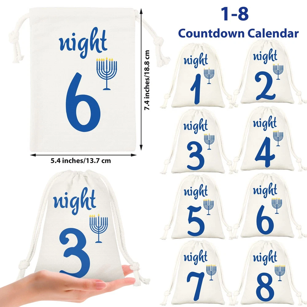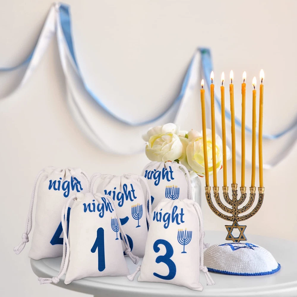 Exclusive Offers - 8 Pieces 8 Nights of Hanukkah Burlap Gift Bags Festival of Lights Linen Treat Goodie Bags Candlestick Design Candy Cookie Packing Pouches with Drawstrings for Hanukkah Party Your Shopping Adventure Starts Now! Welcome to our store! We promise you'll be satisfied. 8 Pieces 8 Nights of Hanukkah Burlap Gift Bags Festival of Lights Linen Treat Goodie Bags Candlestick Design Candy Cookie Packing Pouches with Drawstrings for Hanukkah Party Item Details Specifications: Material: burlap Size: 5.4 x 7.4 inches/13.7 x 18.8 cm Color: as the pictures show Package includes: 8 x Hanukkah gift bags Note: Please allow slight error in size due to manual measurement Product Features Package includes: each set comes with 8 pieces of Hanukkah burlap gift bags, designed for Festival of Lights, printed with numbers of 1-8 and candlestick, the numbles of candle lit on the candlestic also go from 1 to 8, well in line with the festive theme Festival design: the countdown calendar linen treat goodie bags are great helpers to bring you with good Hanukkah blessings, you can just fill the linen bags with gifts, open one bag each night in an air of great expectation till the final day comes, you can enjoy the party happily Premium material: these Hanukkah treat candy cookie packing pouches with drawstrings are made of high quality burlap, durable, washable and reusable, the drawstring design makes it easy to open and close, also convenient for gifts safe storage Proper size: each Hanukkah party favor bag measures around 5.4 x 7.4 inches/13.7 x 18.8 cm, in a wonderful size to put various small items in them, can be placed on different places as well Wide use application: great packing pouches for multiple gifts, like small decors, candies, chocolates, special treats and toys, a creative way to celebrate the Hanukkah holiday season, make this Hanukkah party cheerful and memorable Payment Information ⦿ Secure payments via eBay. We accept PayPal and major credit cards. ⦿ Immediate payment required after purchase. Shipping Details ⦿ We ship to the address provided on eBay. Please verify your address before purchasing. ⦿ Orders will be processed within 1-2 business days and shipped promptly. ⦿ Delivery in 3-7 business days via UPS, FedEx, USPS. Return Policy ⦿ 30-day return policy for full refunds. ⦿ Please ensure items are returned in their original packaging and condition. Contact Us For any inquiries or issues regarding your purchase, please contact us through the eBay messaging system. We will respond within 24 hours.