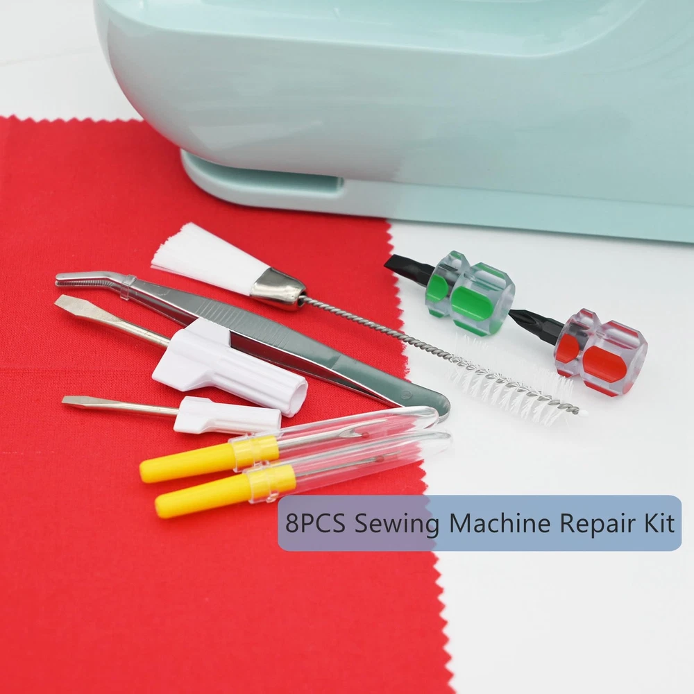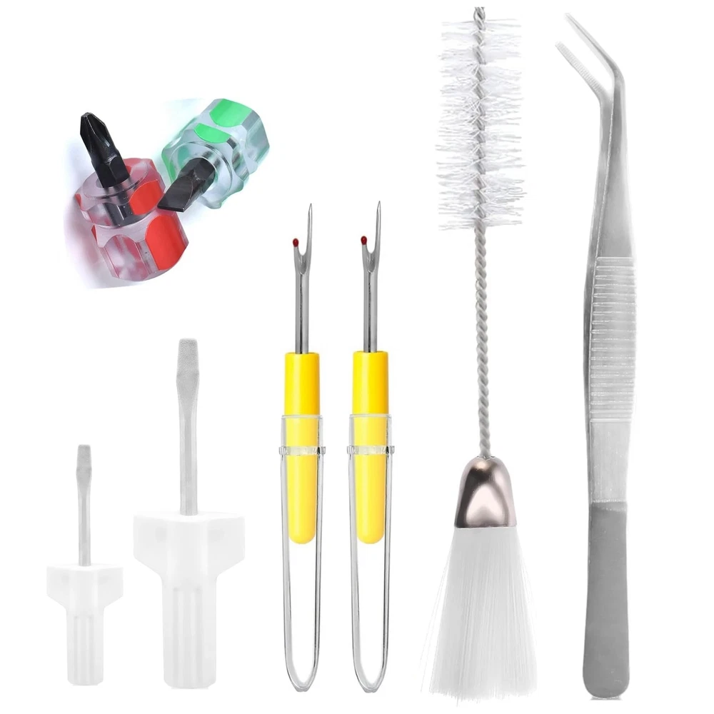 Comprehensive Kit: This 8-piece sewing machine cleaning kit includes essential repair tools like tweezers, a double-headed brush, and a screwdriver for thorough cleaning and maintenance. Versatile Tools: The kit's tweezers allow for precise removal of lint and debris, while the double-headed brush reaches tight spaces for deep cleaning. Easy Repairs: The included screwdriver makes it simple to disassemble and reassemble your sewing machine for repairs or part replacements. Product:The tweezers are made of stainless steel, and the screwdriver is made of plastic and metal, which is sturdy, durable, and not easy to break. Easy Maintenance: The included tweezers and screwdriver make it simple to access and adjust various components for optimal performance.