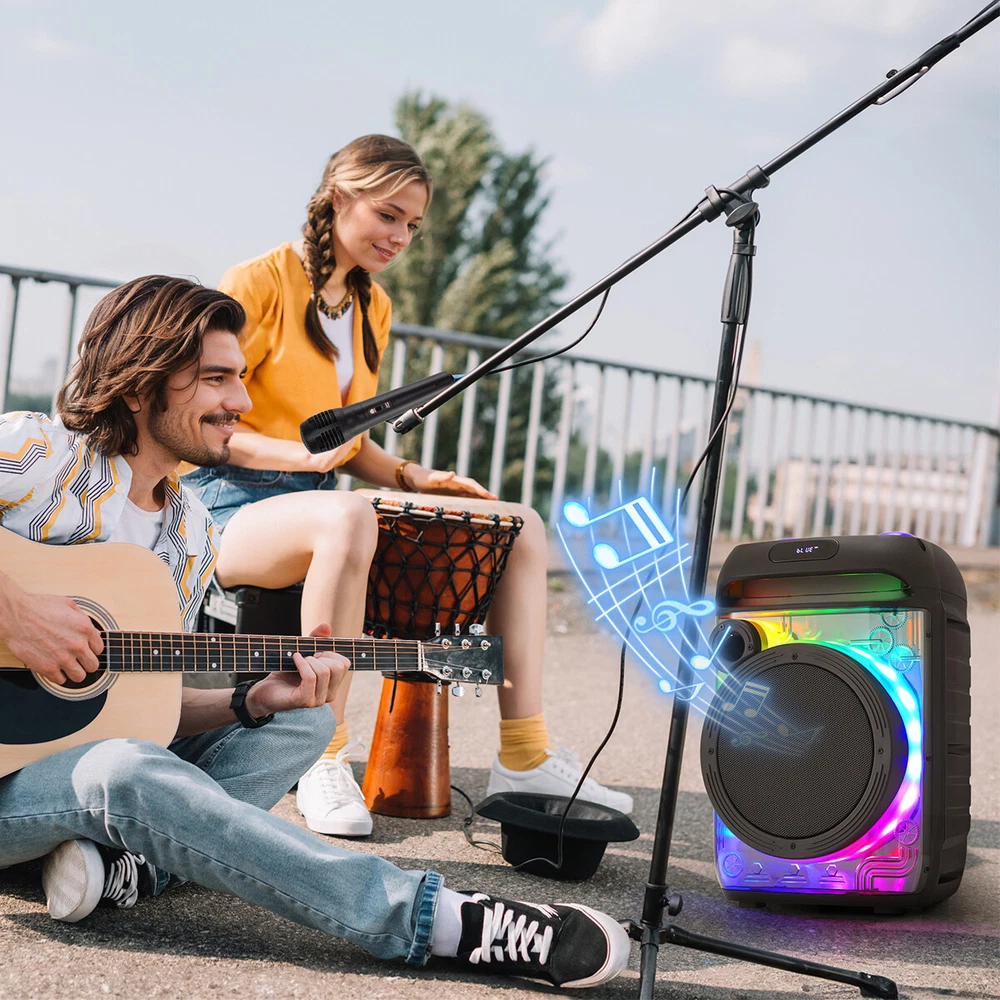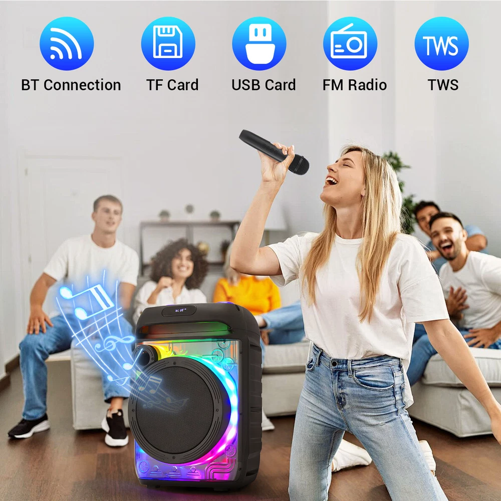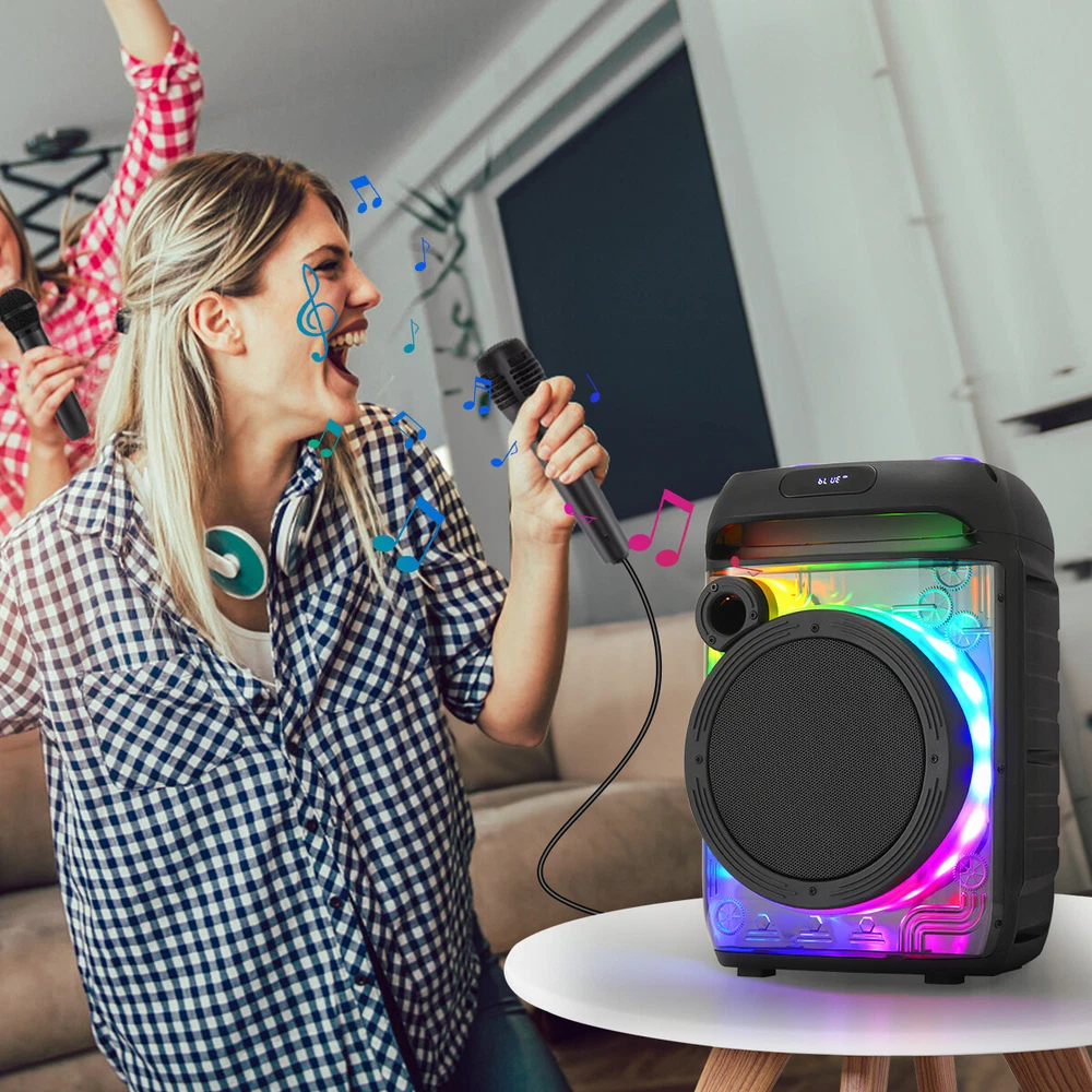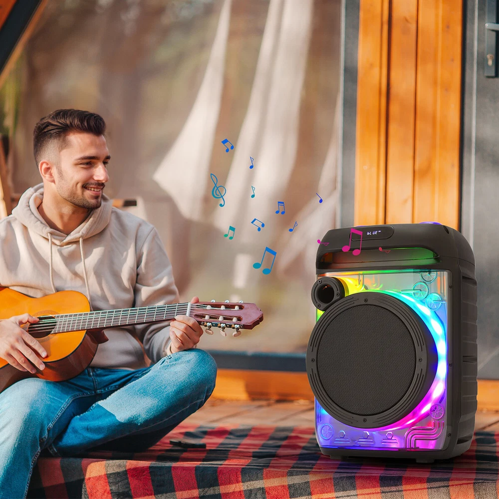 8" Portable Bluetooth Speaker Sub woofer Heavy Bass Sound System Home Speakers Feature: Material: ABS Color: Black Bluetooth name: PBX-806 Connection distance: < 10m Speaker: 8 inches Functions: USB, TF, FM, AUX, BT connection, TWS connection Input voltage: DC5v 1A Power (virtual standard) : 6000w Charge the red light on, full off Package Include: 1 X 8 "transparent mecha stereo 1 X Remote control 1 X Wireless microphone 1 X Wired microphone 1 X English instruction manual 1 X Ac adapter 1 X USB charging cable Contact us: Payment: Shipping: Warranty Return Contact us: We have always been trying to provide the best service and reliable products for every customer, however, accident may happen sometimes, please contact us to resolve any issue before leaving a negative feedback. Payment: 1. All payments must be prepaid before shipping. 2. We only accept payment via PayPal. Please kindly check if you can do the payment via PayPal before placing an order. Shipping: 1. Item will be shipped same business day if paid 4 pm EST 1 pm PDT (except weekends and holidays) and shipped from US. 2. Orders from the United States will all be shipped out via starnding shipping or economy shipping. The shipment usually takes 3-7 business days(Saturday and Sunday excluded), if you need the item urgently, please contact us for detail before purchase. Orders from overseas will be shipped via DHL Express, 3-5 business days. 3. Local pick up is not available. Warranty . The warranty shall not apply to the following circumstances: a) Damage caused by undue wear&tear, misuse, improper installation or operation, neglect, accidents. b) Damage caused by natural disasters, flood, fire, lightning or pollution. c) If item was opened, any parts removed or repaired by any unauthorized person. Return (1).We stand behind our items and offer 60 days warranty. All items are in brand new condition unless specified otherwise elsewhere in the description. (2).All returns - defective or otherwise - have to be preauthorized. Please contact us to get an authorization and returning address before sending the item back.If an item is returned because of an undeliverable shipping address, buyer agrees to pay the cost for re-shipment. (3).Please note that If the return/replacement is not a result of our mistake (not defective or wrong item), the buyer is responsible for return shipping, as well as a 20 percent restocking fee. (4).Replacement or refund will be made upon receipt of the returned item. If you do not want to wait for the replacement, you can just reorder one and then send the first one back for a refund.