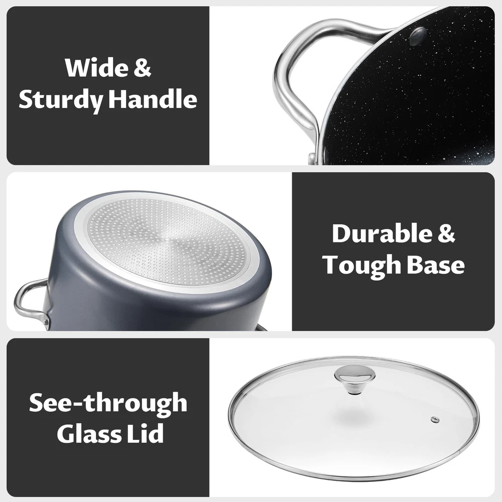 stock pot cooking pot stock pot with lid pot pots non stick pots cooking pots ceramic pot 8 quart pot with lid cooking pots with lids big pots for cooking soup pot with lid induction pot large pot non stick pot big pot large pot for cooking ceramic pots 8 qt pot with lid nonstick pot soup pot 8 quart pot 8qt pot with lid stew pot large cooking pot 8 qt pot large cooking pot with lid dutch oven pot with lid pot with lid large stock pot with lid stock pots induction pots 10 quart pot with lid large stock pot pot lid ceramic cooking pot 6 quart pot with lid stockpot with lid big cooking pot pasta pot non-stick cooking pot 6 qt pot with lid 8 Quart Pot with Lid: Designed for family cooking, this versatile cooking pot effortlessly prepares generous portions of soups, stews, and pasta—perfect for families of 3–5 Effortless Cleanup: Dishwasher Safe. The soup pot feature a rimless edge design, preventing dirt buildup and making cleanup a breeze Ultra-Nonstick Stock Pots: Ensures 3x better food release for extended usability & effortless cleaning Compatible With All Cooktops: This warp-resistant, non stick pots seamlessly works on induction, gas, electric, & halogen stovetops for versatile cooking Optimal Heat Distribution: Crafted from premium aluminum, this cooking pots with lids ensures uniform heating for superior cooking results Secure & Comfortable Hold: Ergonomically designed stainless steel handles of this stock pot with lid , making it easy to handle and maneuver during cooking Tight-Seal Shatter-Resistant Glass Lid: Perfect for the big pots for cooking, it enhances efficiency & allows clear progress monitoring during the cooking process