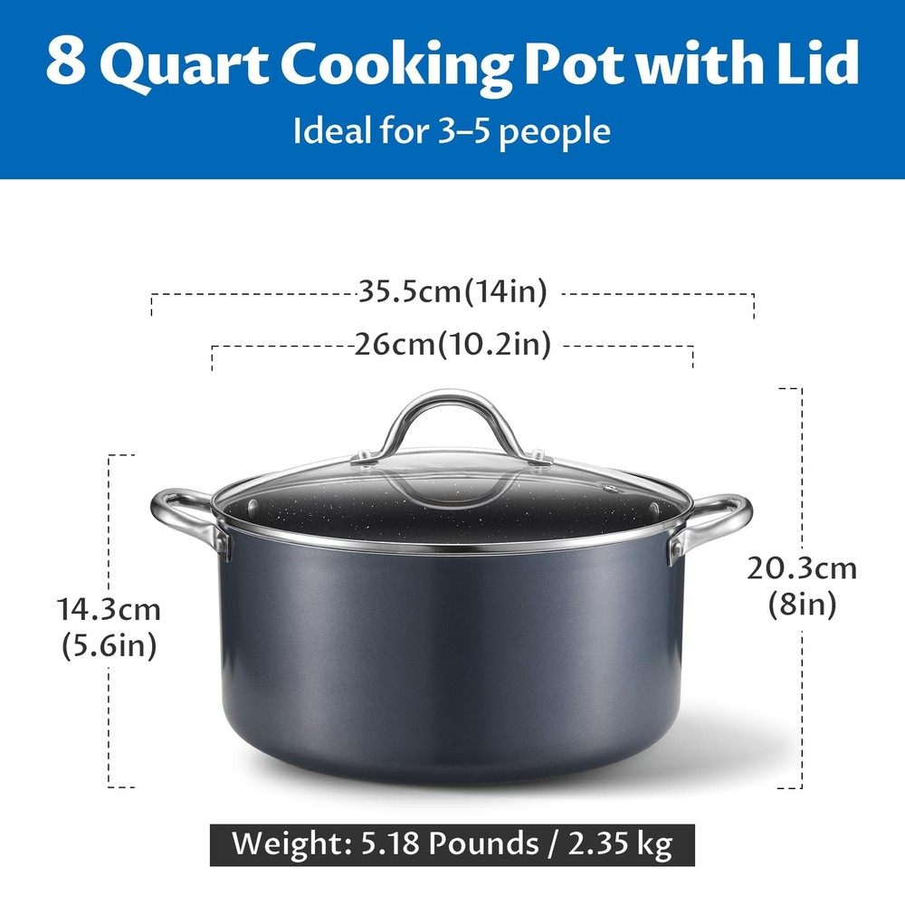 $ 25.35Large 8 Quart Nonstick Cooking Pot With Lid Induction Stock Pot Soup Pot For All