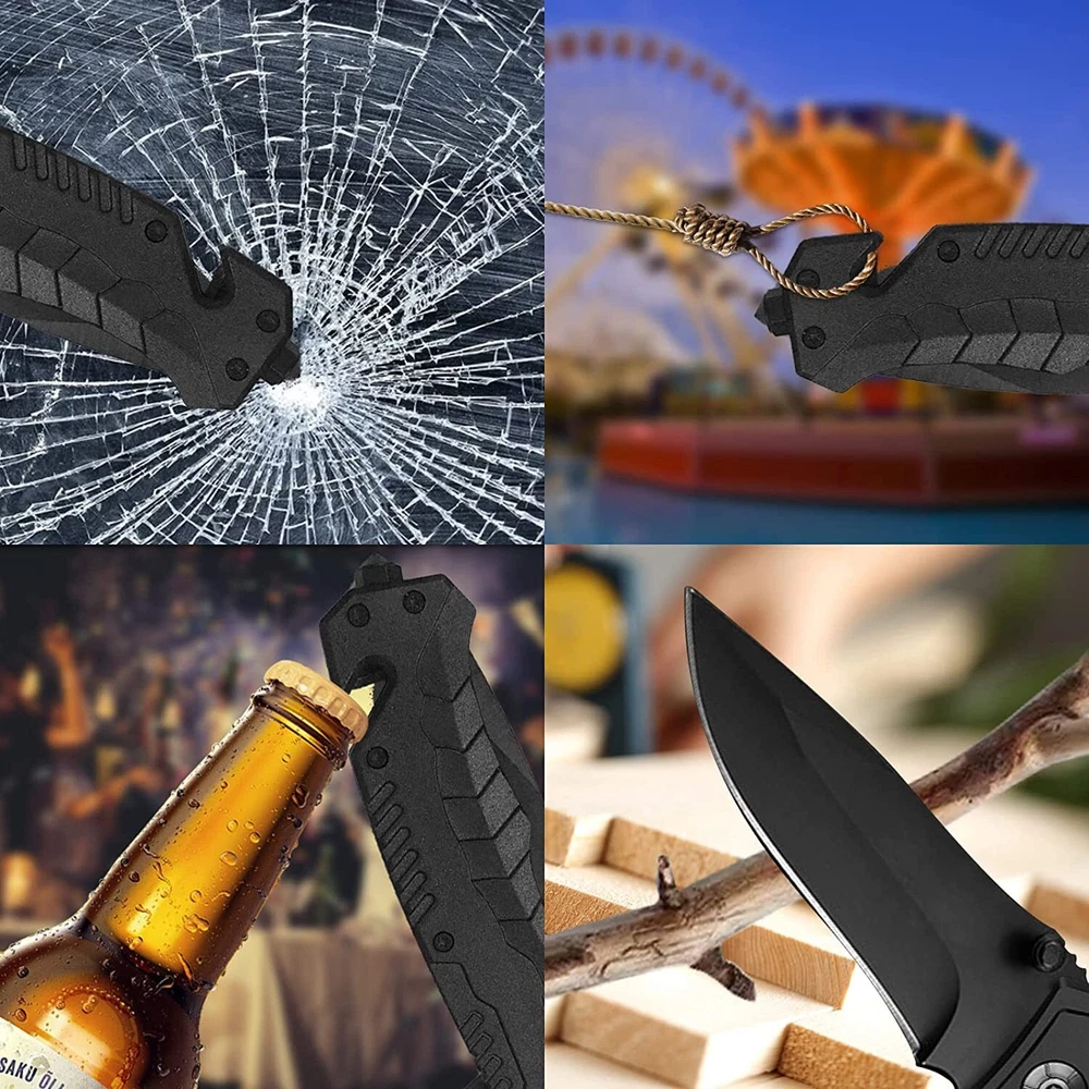 Knife type: folding knife You buy here a very high quality outdoor folding knife of the brand The extremely sharp blade, is made of stainless steel and can be opened comfortably with one hand, by means of flip function. The knife meets all the criteria you would expect from a Survival pocket knife! In addition to an extremely high overall stability of the knife, it additionally has a belt cutter and a glass breaker. In addition, you can easily carry your faithful companion with you with the existing belt clip and have your tools at hand at any time. Whether you are carving, cutting, guttering, refining or crushing, the robust, ergonomically shaped handle made of aluminium is perfect for you and carbon perfect in the hand. Features: robust and wear-resistant, sharp and durable, easy to carry, suitable for hand shape, carefully selected materials, mini and compact, foldable Specificaiton: Blade length: 9cm Blade angle: 50 ° Length of knife handle: 110mm Application: Outdoor, Self-defense Material: aluminium alloy+stainless steel 3cr13 Applicable audience: It is not recommended for minors to buy and use, and during use supervision by adults is required. P ackage included: 1 x Knife