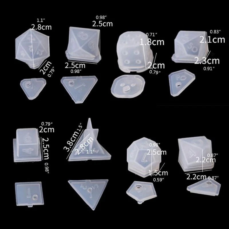 8 Shapes Silicone Resin Casting Molds Resin Dice Molds Polyhedral Game Dice Mold