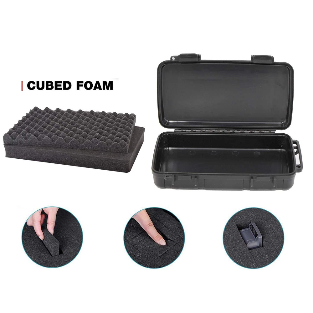 Protective Cases keeps your valuable equipment safe. Close and latch your cases to automatically safely seal your gear against water, air and dust. Its tough with foam or dividers will keep your camera, video or high cost equipment safe from impact, providing safe, secure protection from the elements. Built-in padlock holes give extra safety. optional locking latches give added security and keeps out prying hands. ✔【CUSTOMIZABLE FOAM INTERIOR】Pre-cut foam squares allow for customizing the interior, Customize your internal space to fit snugly around your items with the included Pre-Cubed foam tray.Just remove pluckable foam to create the perfect storage for your items. ✔【COMPACT TRAVEL DESIGN】This case features a premiun hard shell exterior constructed from durable plastics that will provide impact-resistance to your valuable contents. Exterior Dimensions: 8.6'’ x 4.9'’x 1.9'’ - Interior Dimensions: 7.8'’ x 3.9'’ x 1.5'’ . Case weight: 0.78 lbs. ✔【PROTECTION AGAINST IMPACTS, DROPS, DINGS & DUST】Watertight, Airtight and Crush Resistant protection for your valuables. ✔【SECURE STORAGE】This weather-resistant case is great for storing and protecting phone,EDC gears,flashlight, batteries, pocket knife and other small electronics on your trips like fishing, kayaking and cycling. ✔【100% SATISFACTION GUARANTEE】We’re so confident that our products will meet or exceed your expectations, so we are offering a risk free, no questions asked, money back guarantee.If you have any questions, please feel free to tell us, we will try our best to satisfy every customer.